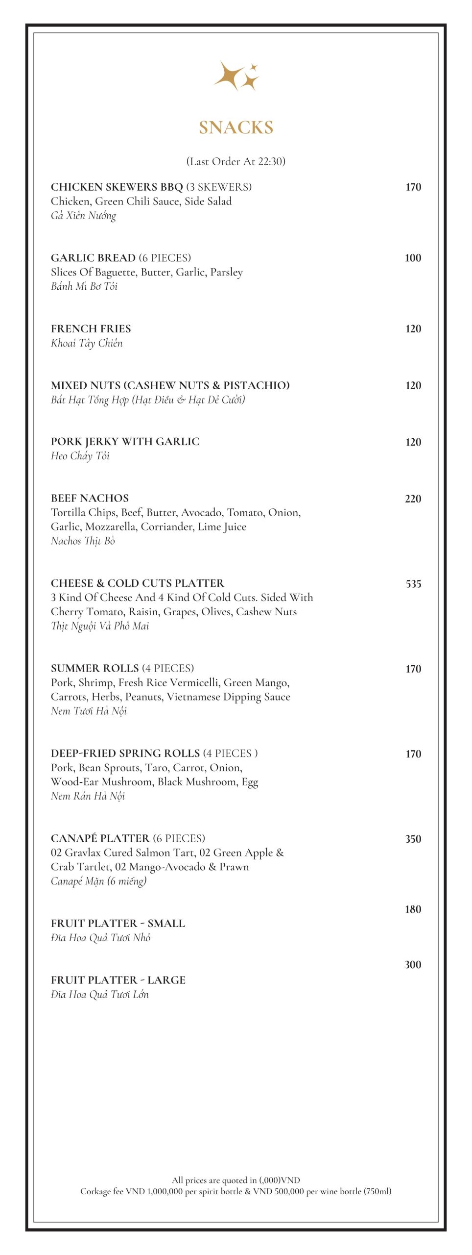 Thứ 3: 17h00 – 23h00 - Mức giá tham khảo: 50.000 vnđ – 200.000 vnđ (với thức uống)