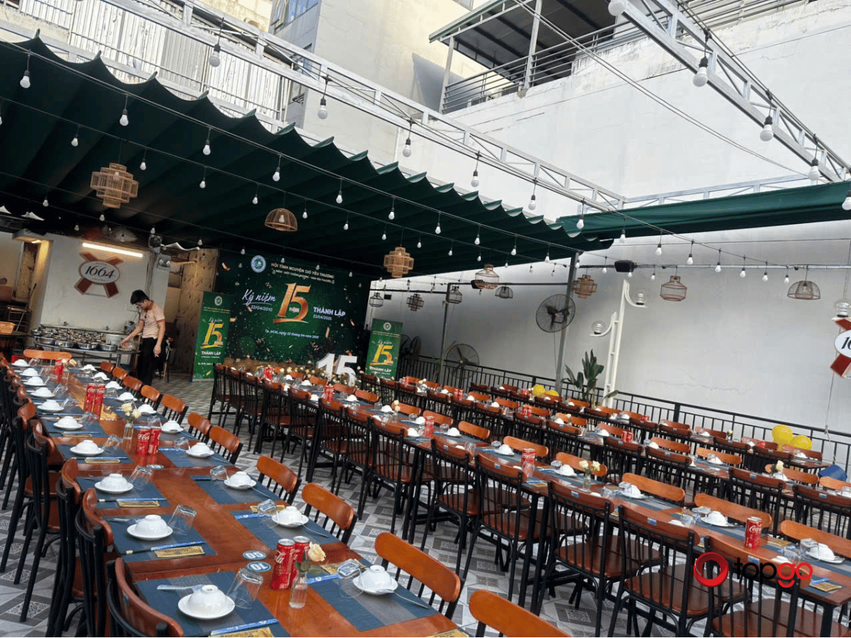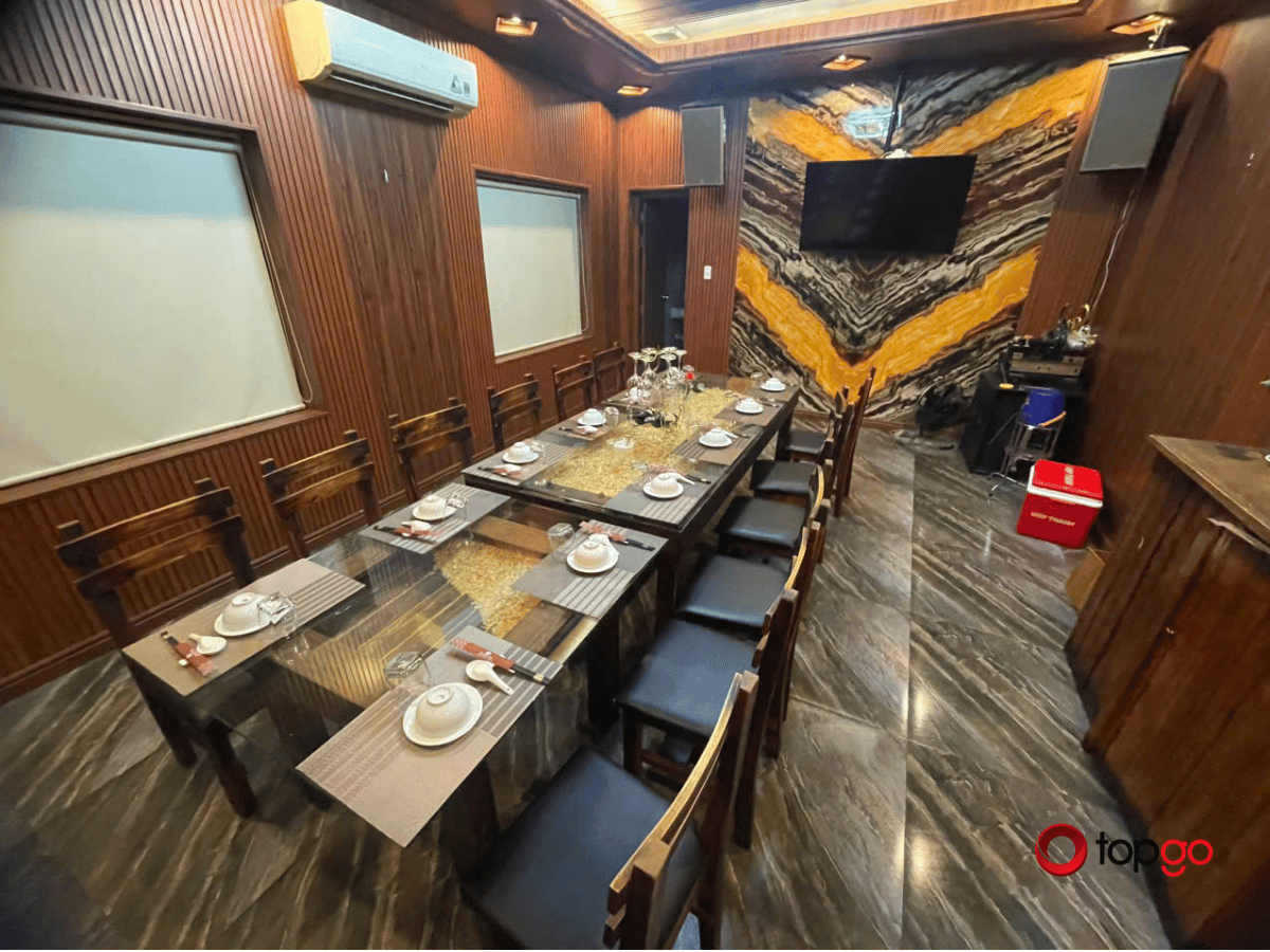 Tùy nhu cầu, nhà hàng hỗ trợ thêm hệ thống âm thanh, micro, sân khấu nhỏ hoặc các hình thức trang trí. Để buổi tiệc diễn ra suôn sẻ, TopGo sẽ đồng hành cùng khách trong khâu chuẩn bị. TopGo hỗ trợ điều phối thời gian, tư vấn menu và kết nối trực tiếp với quản lý để đảm bảo chất lượng dịch vụ.