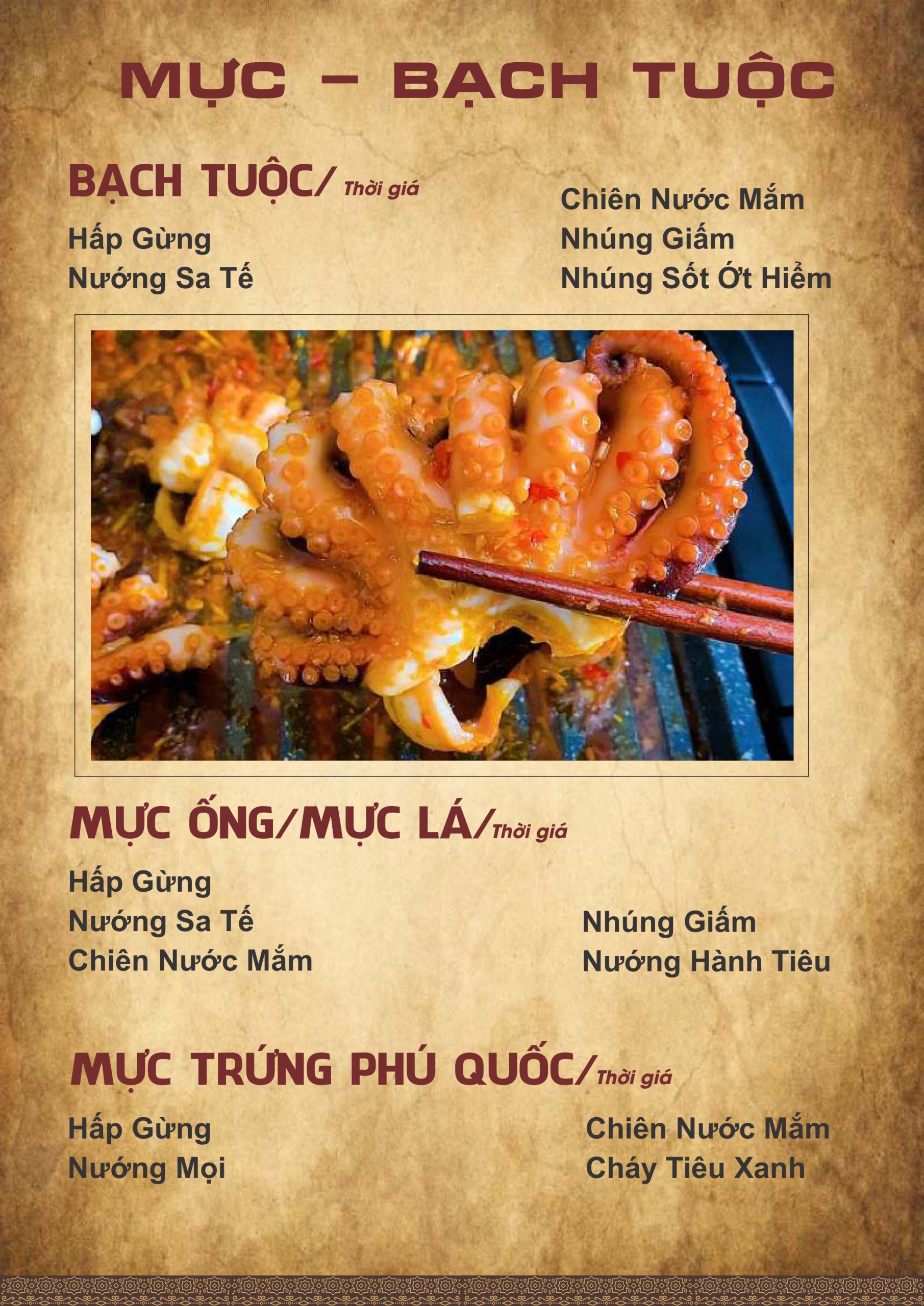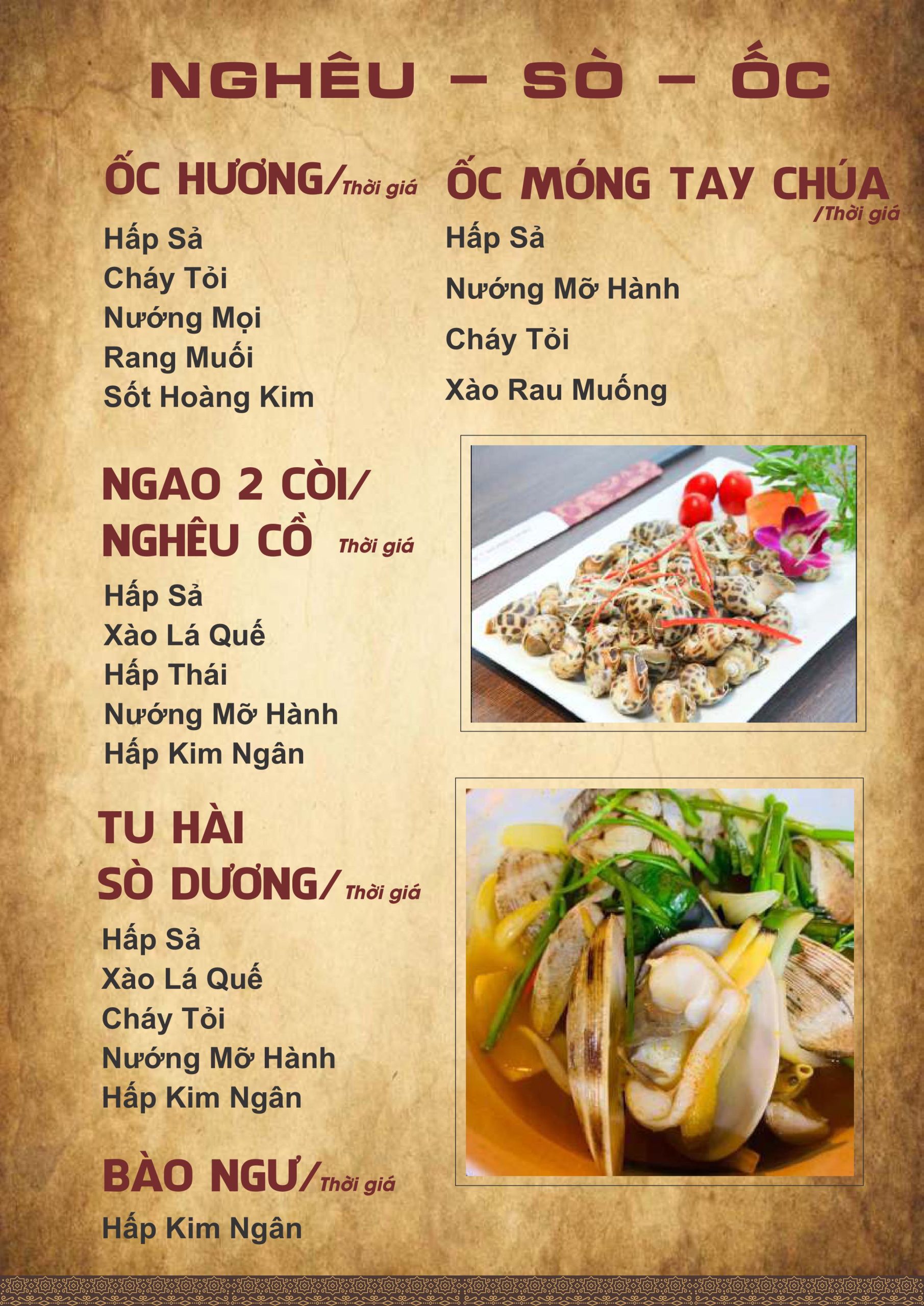 Menu hơn 100 món Á – Âu: hải sản tươi, món quê ngon, món ăn văn phòng chất lượng