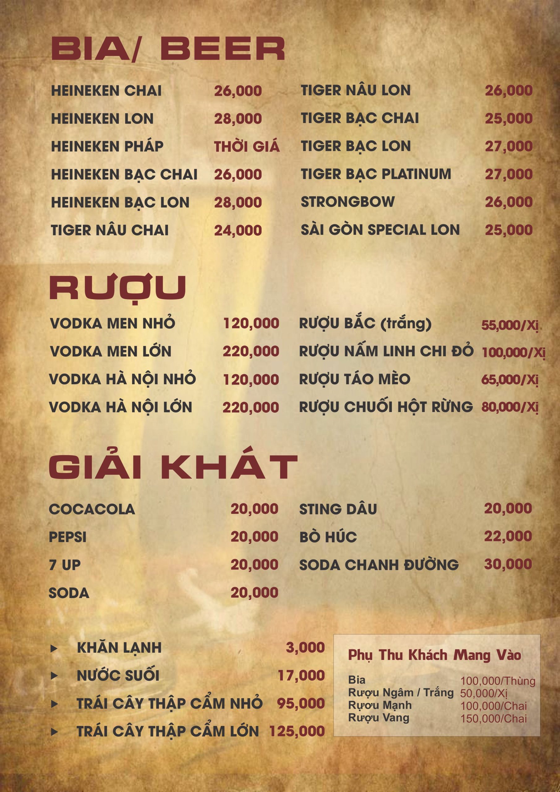 Menu Click vào MENU để xem thực đơn