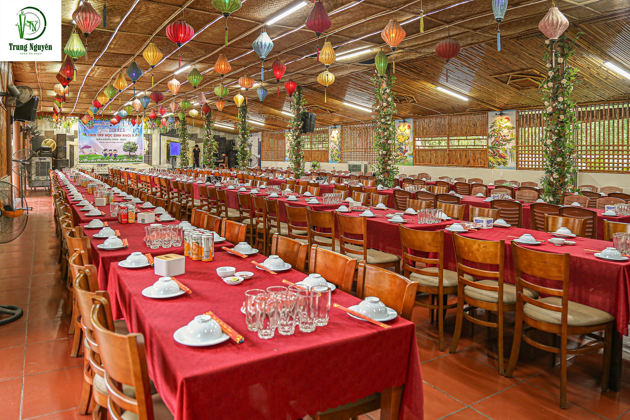 Bước vào Nhà hàng Mâm Tre, bạn sẽ ngỡ như lạc vào một góc nhỏ của làng quê Việt. Những chiếc mâm tre mộc mạc, bức tường vàng phai màu thời gian, cùng những hình ảnh gợi nhớ về tuổi thơ với bữa cơm gia đình đầm ấm. Không gian ấm cúng, giản dị như chính những món ăn nơi đây – không cầu kỳ, không xa hoa, chỉ đơn giản là hương vị của nhà.