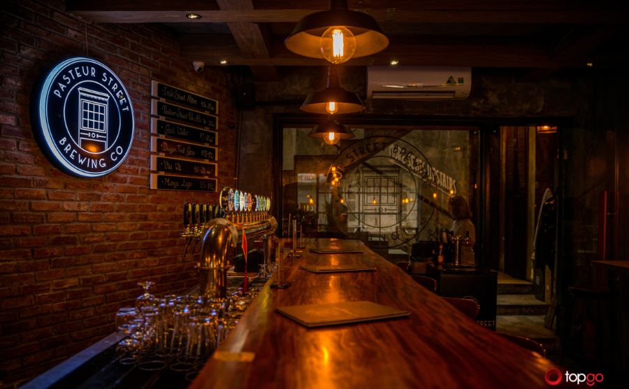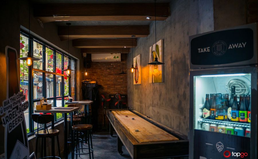Những bức tường gạch cũ, hoa văn tinh xảo, ánh đèn vàng dịu nhẹ – tất cả gợi nhớ một thời vàng son của Hà Nội. Không gian được bài trí tỉ mỉ, từng chi tiết đều như đang thì thầm kể chuyện về quá khứ.
