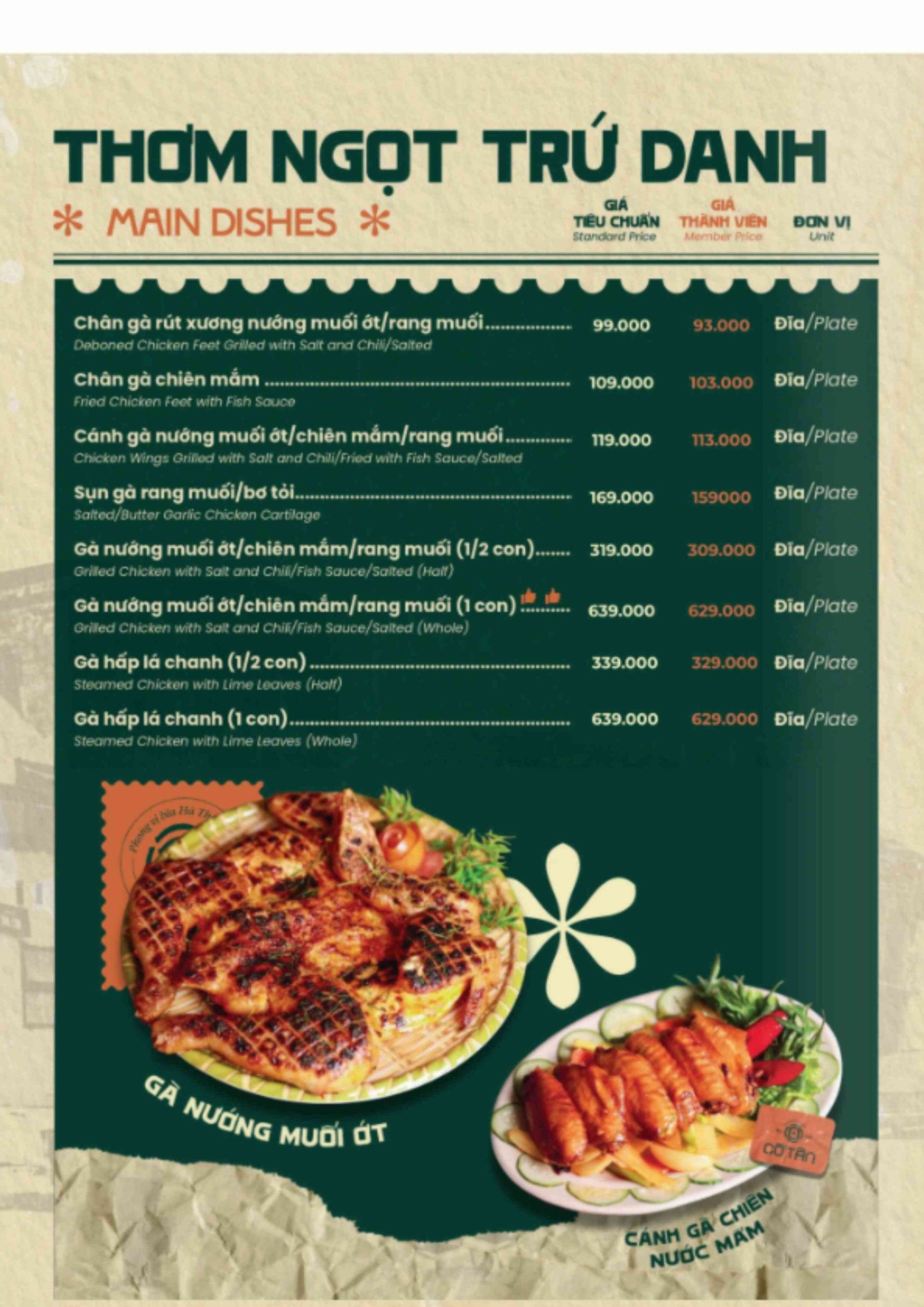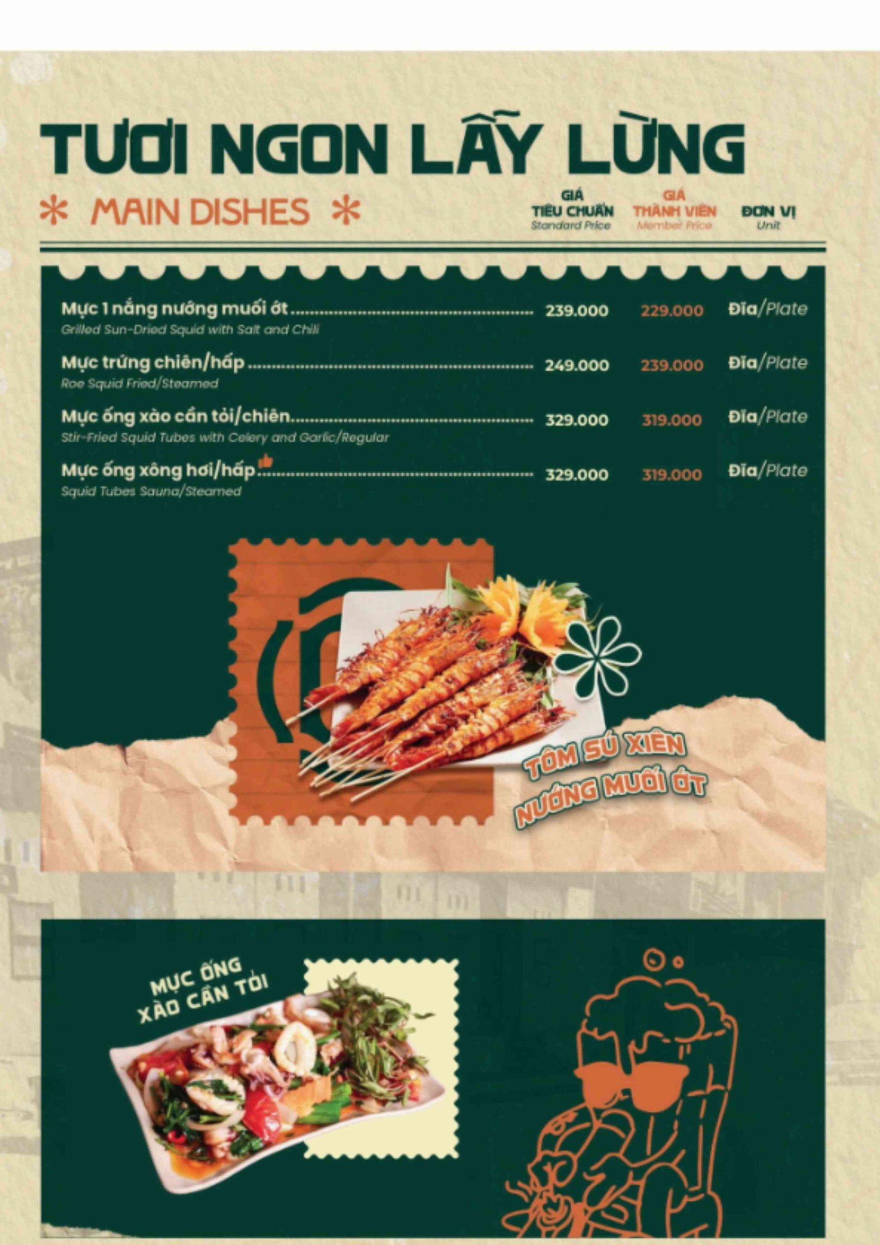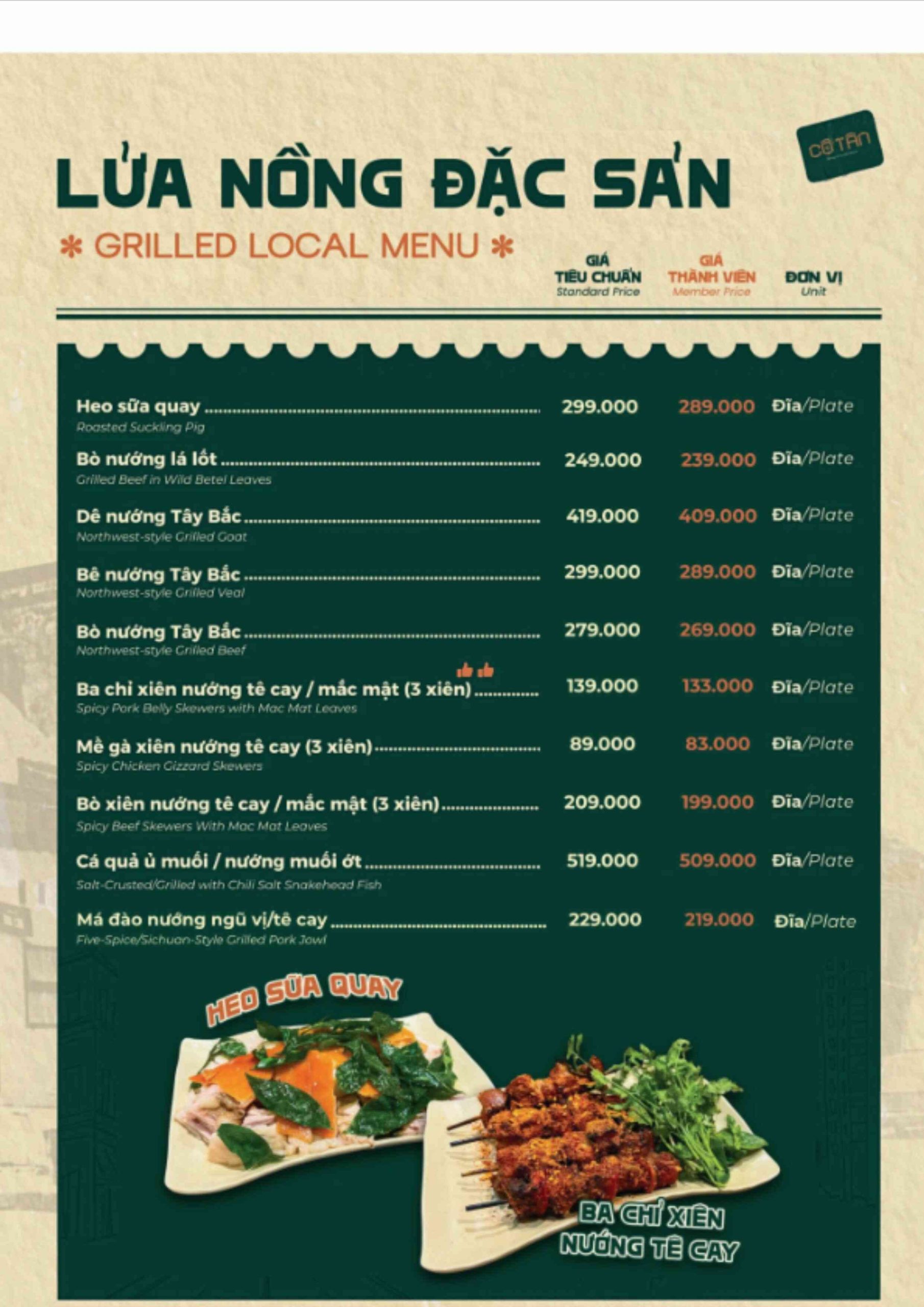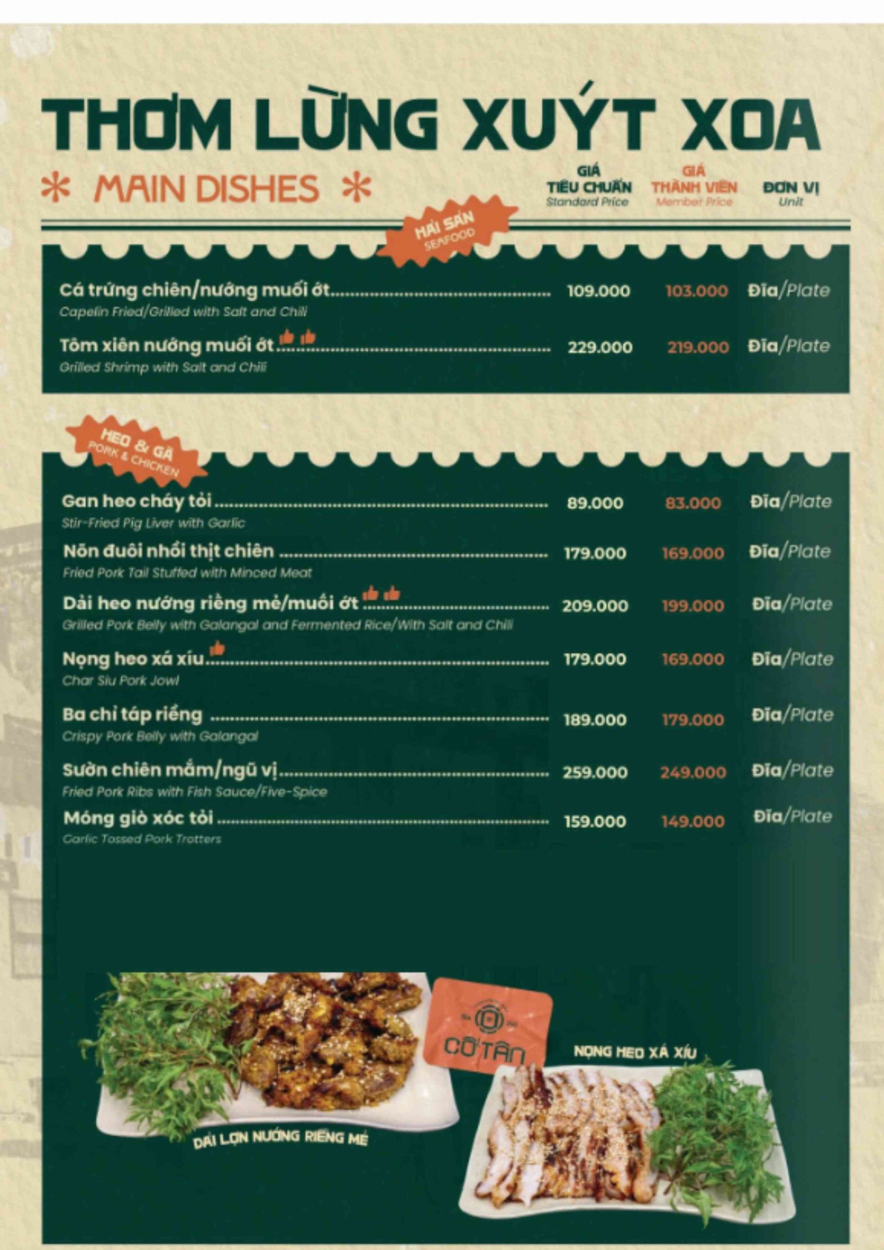 Click vào MENU để xem thực đơn