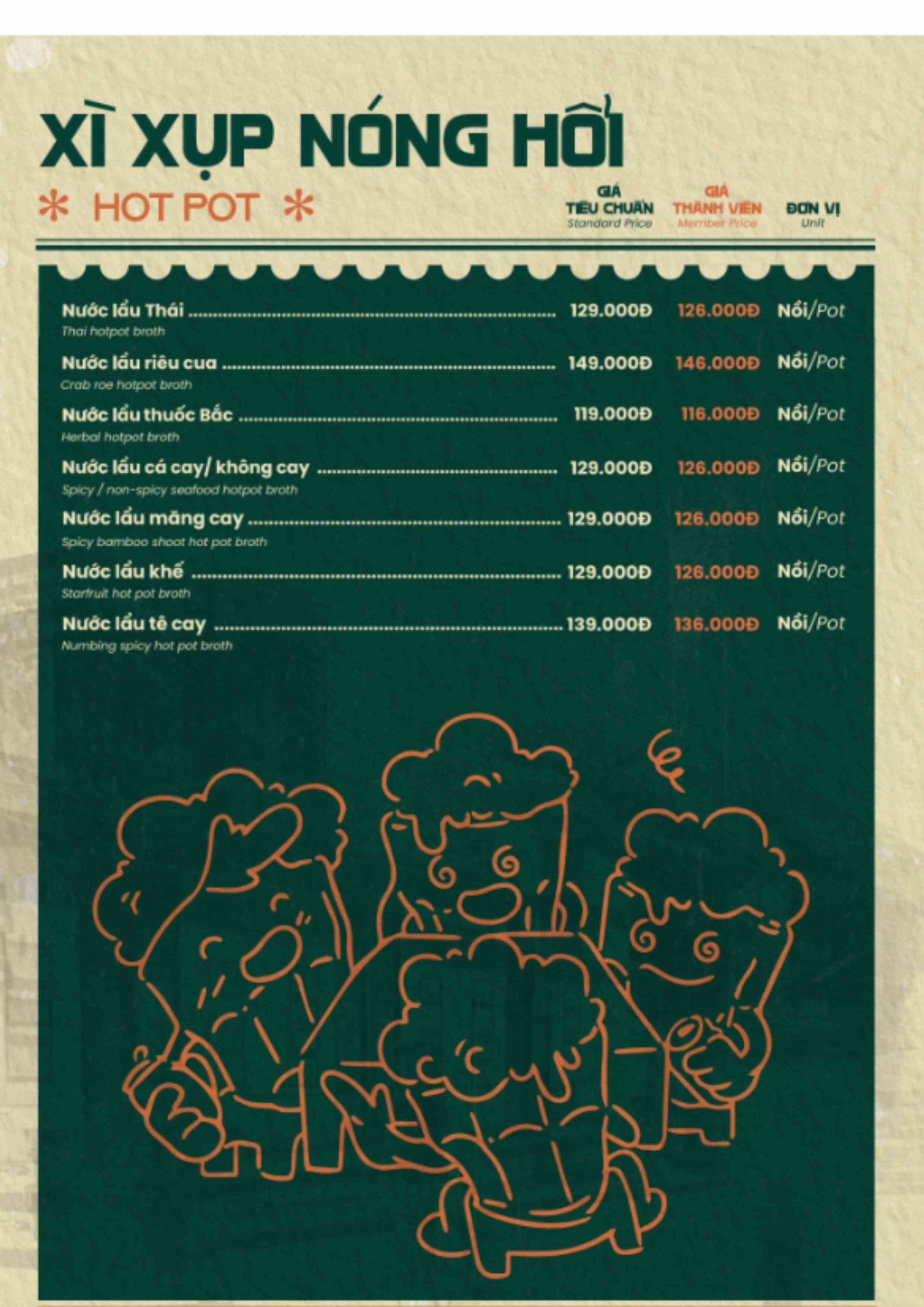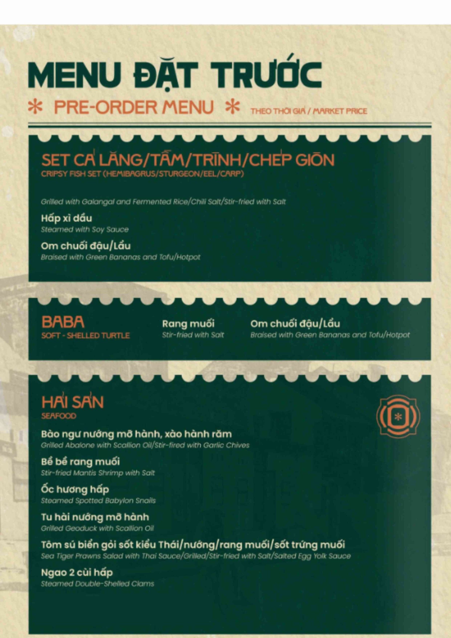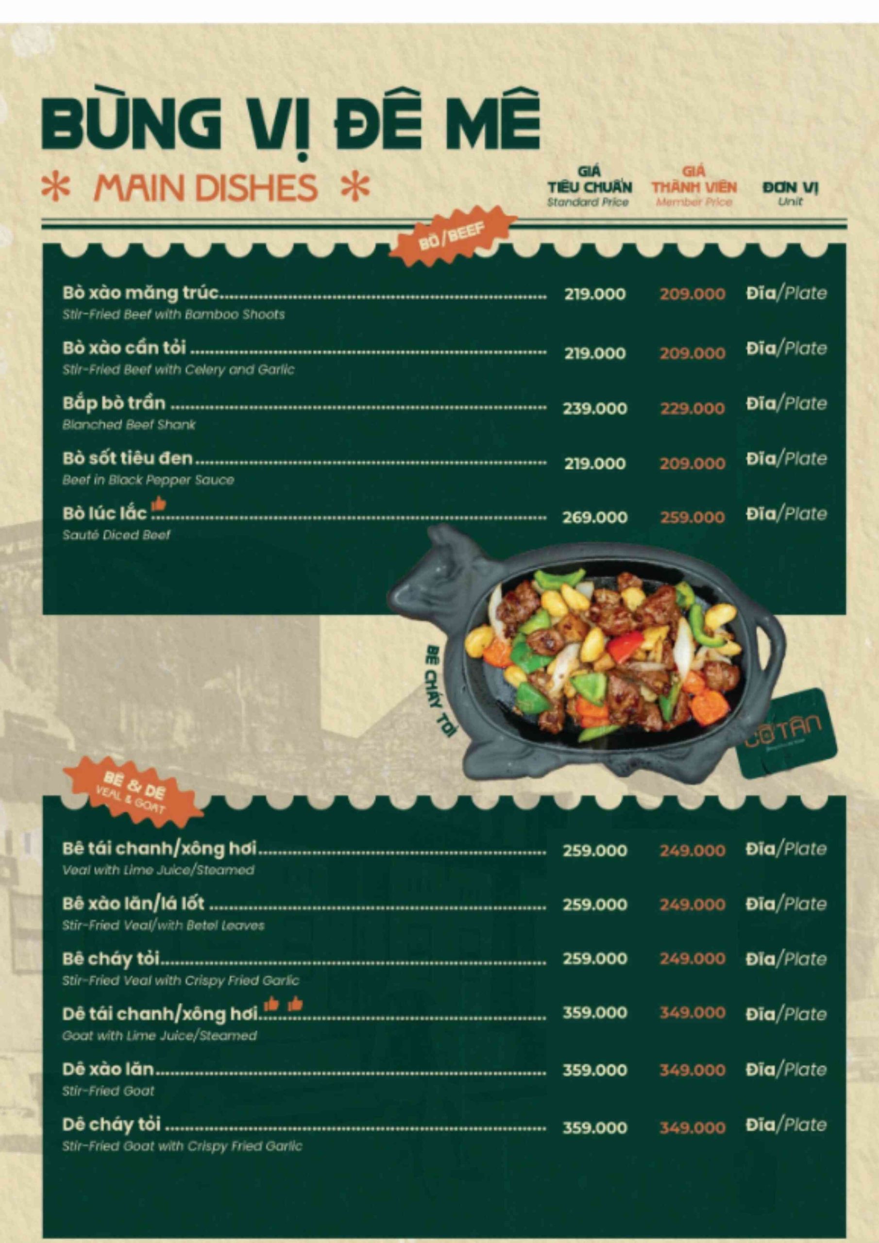 Click vào MENU để xem thực đơn