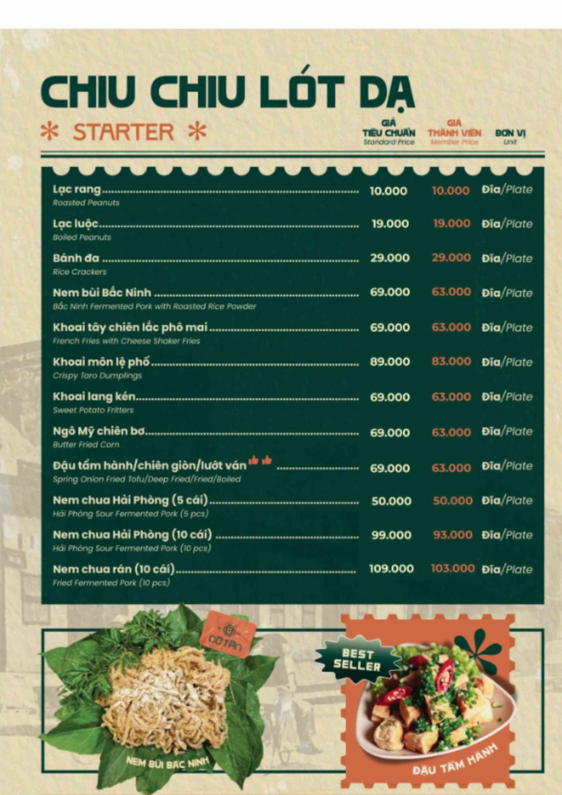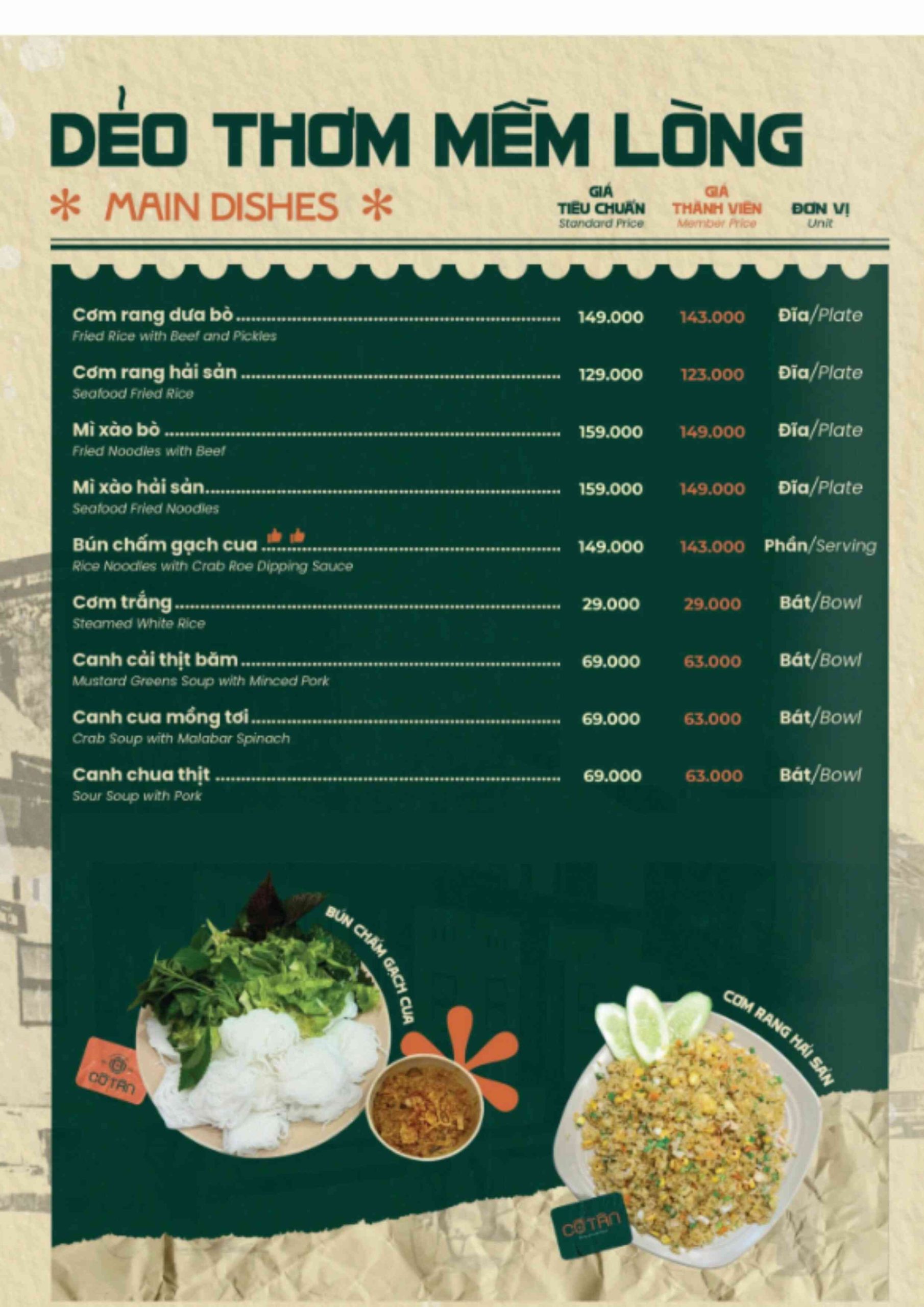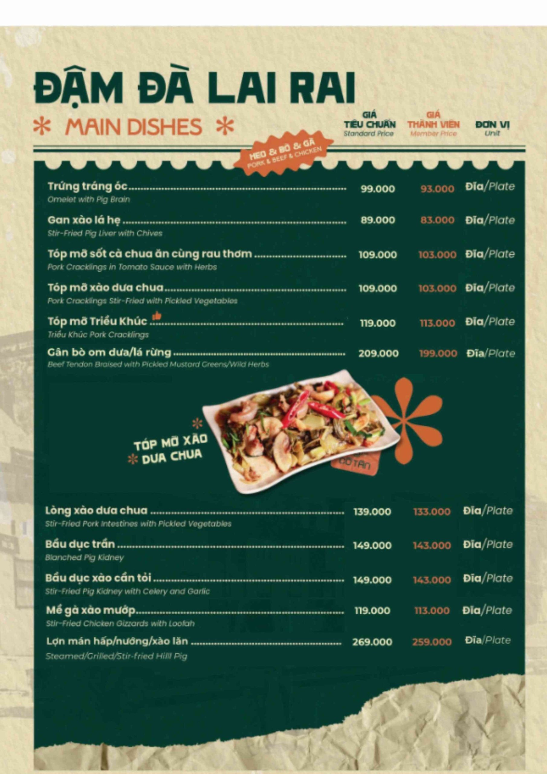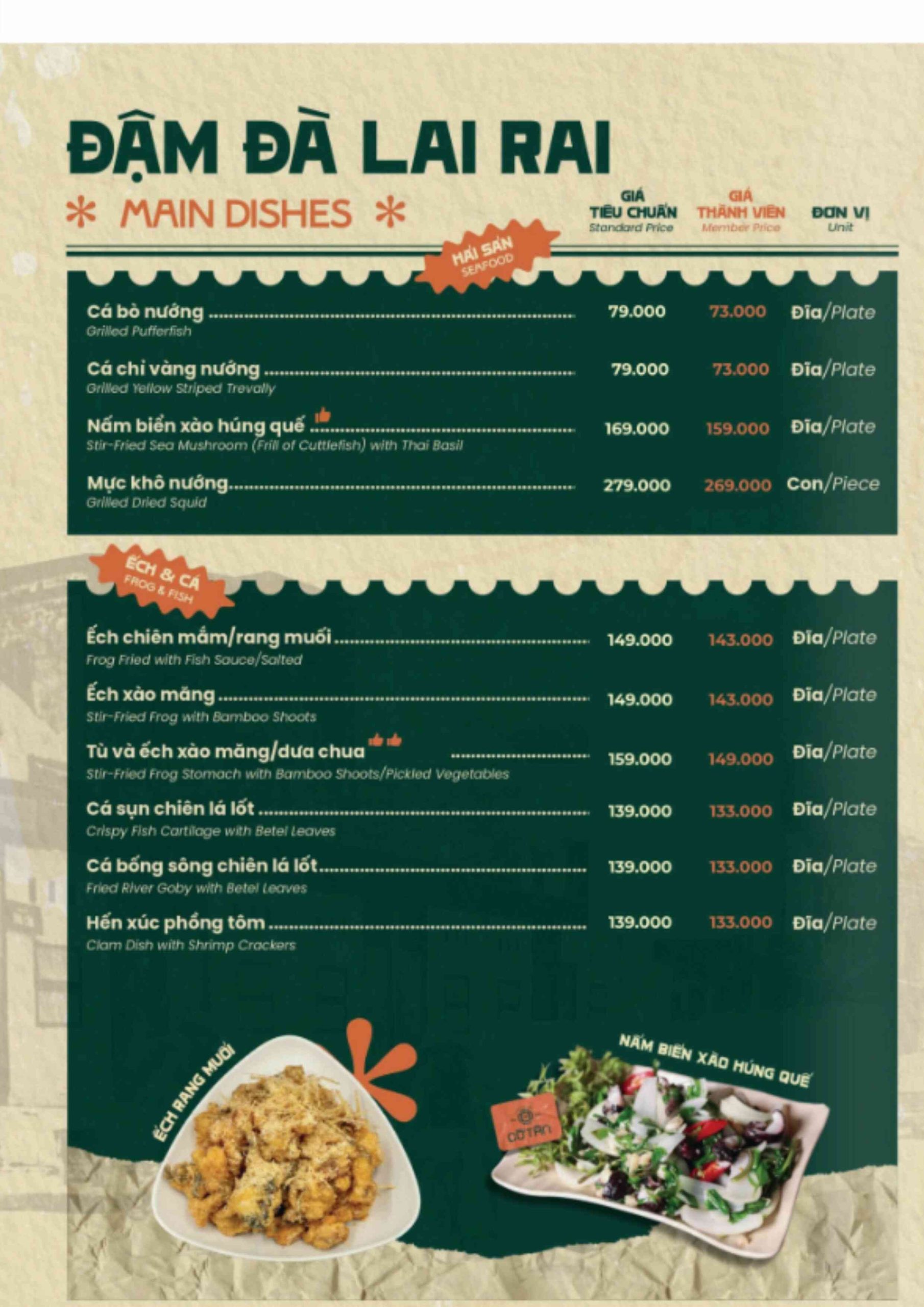 Click vào MENU để xem thực đơn