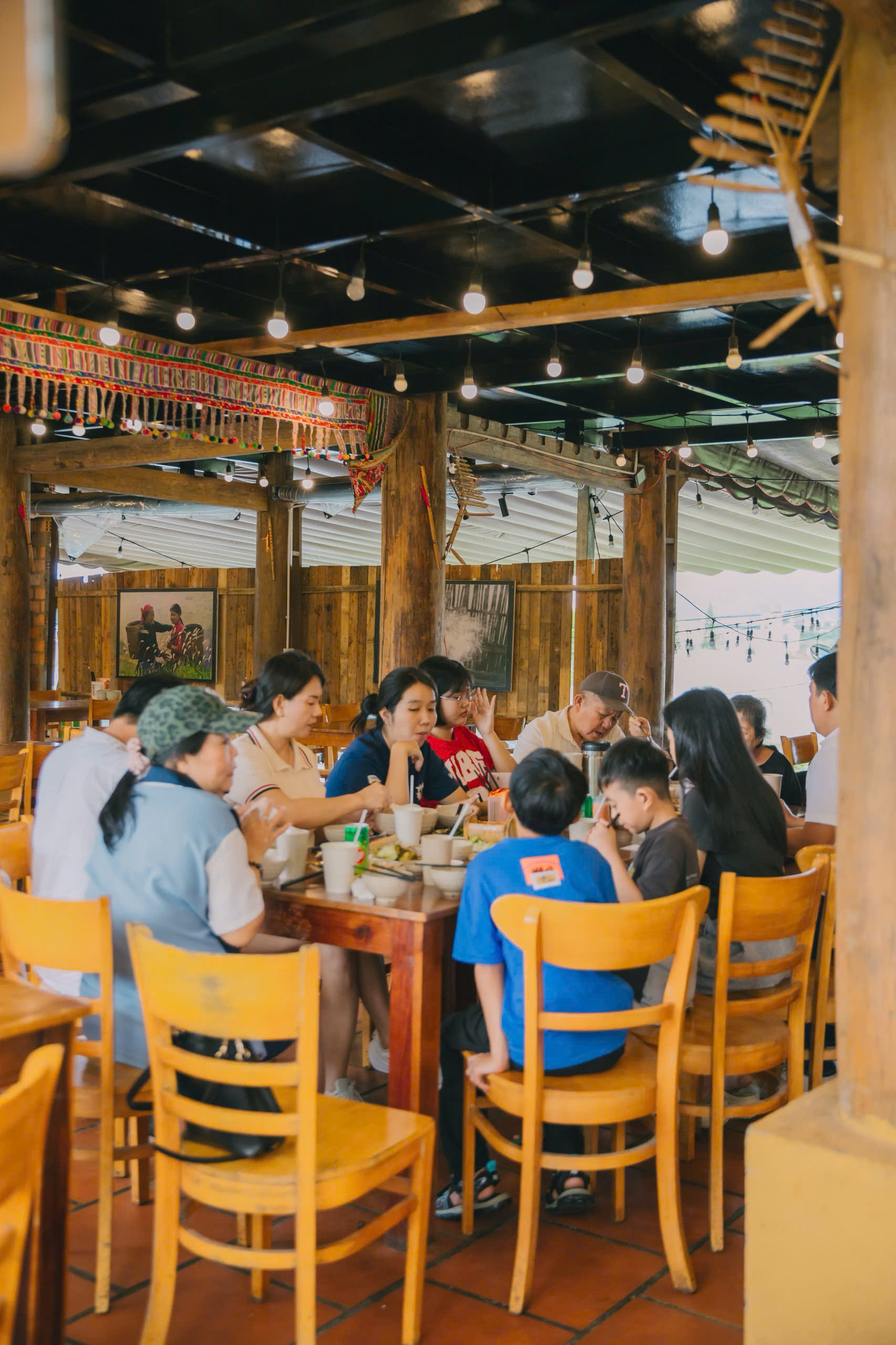Giữa rất nhiều quán ăn tại Đà Lạt, Chợ Phiên Quán tạo cảm giác khác biệt ngay từ cái nhìn đầu tiên. Không phải kiểu nhà hàng hiện đại hay quán ăn nhanh, nơi đây mang đến một không gian đậm chất vùng cao, nơi mọi thứ diễn ra chậm rãi hơn và gần gũi hơn. Người ta đến Chợ Phiên Quán không chỉ để ăn. Họ đến để cảm nhận không khí, để ngồi giữa không gian gỗ mộc, nhìn ra thung lũng và thưởng thức những món ăn mang hương vị núi rừng. Đó là kiểu trải nghiệm khiến bữa ăn trở nên trọn vẹn hơn, không chỉ dừng lại ở việc no hay ngon.