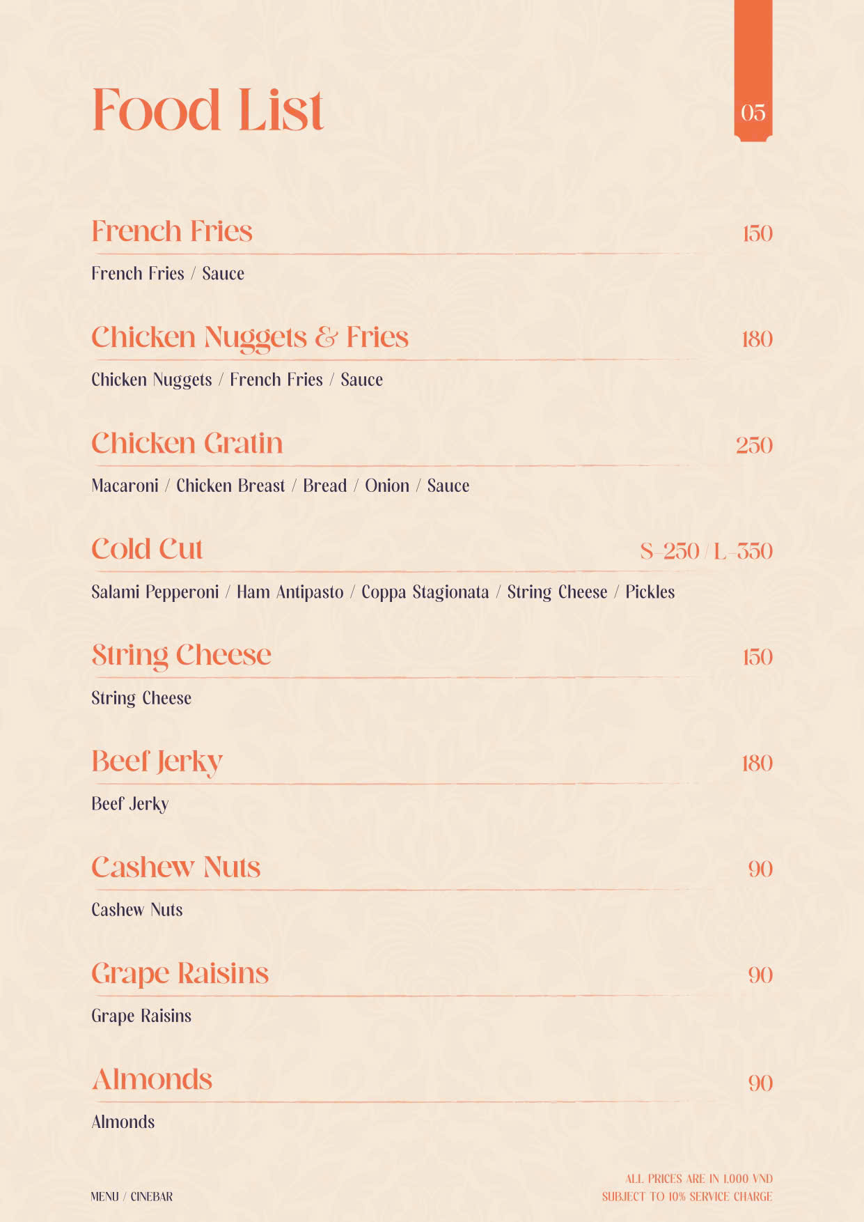 - Phí mang vào: Không khuyến khích mang đồ bên ngoài vào, nếu có đem cần liên hệ trước; Không thu phí đồ bên ngoài miễn là sử dụng sản phẩm/ dịch vụ của Cinebar