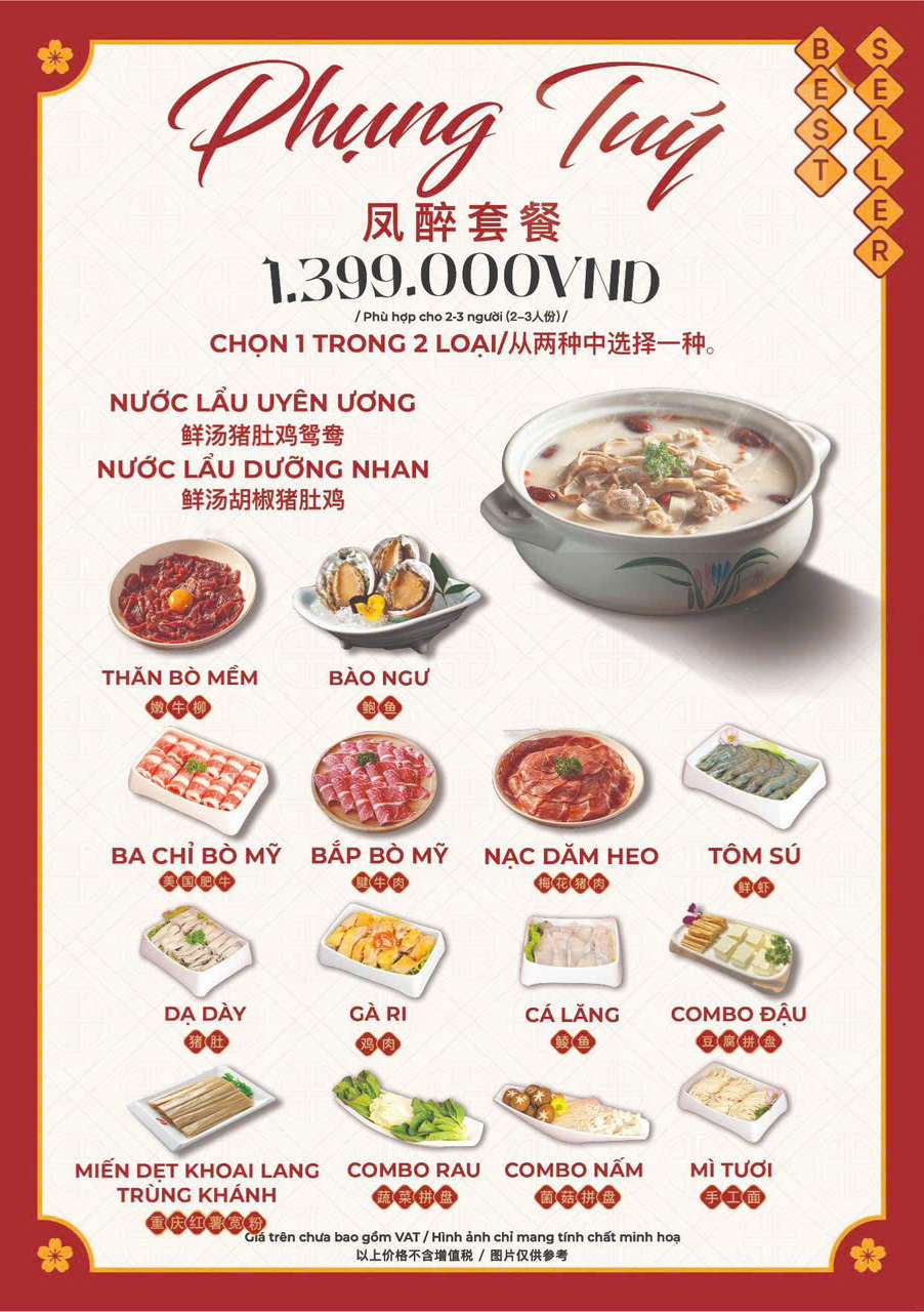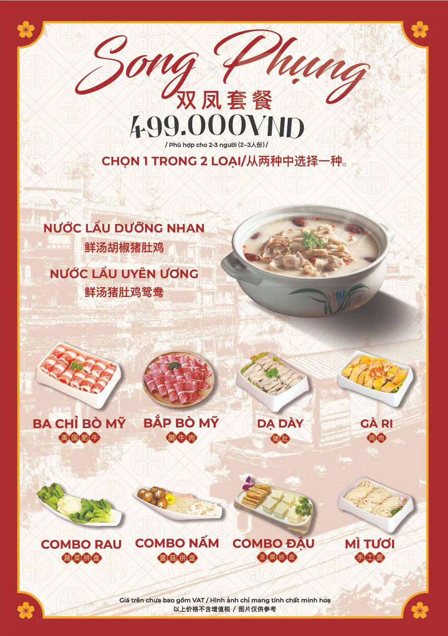Nước lẩu lúc này lý tưởng để kết hợp cùng các loại thịt mềm, rau nấm và miến dẹt khoai lang Trùng Khánh. Một nồi, hai cách thưởng thức, mang đến hai lần thăng hoa vị giác trong cùng một bữa ăn.