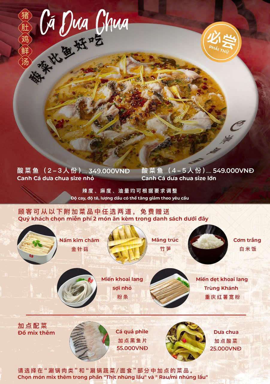 • Món nổi bật: Canh cá dưa chua, Lẩu dưỡng nhan, Lẩu Cua Thất Hãn Thiên, Trà táo đỏ