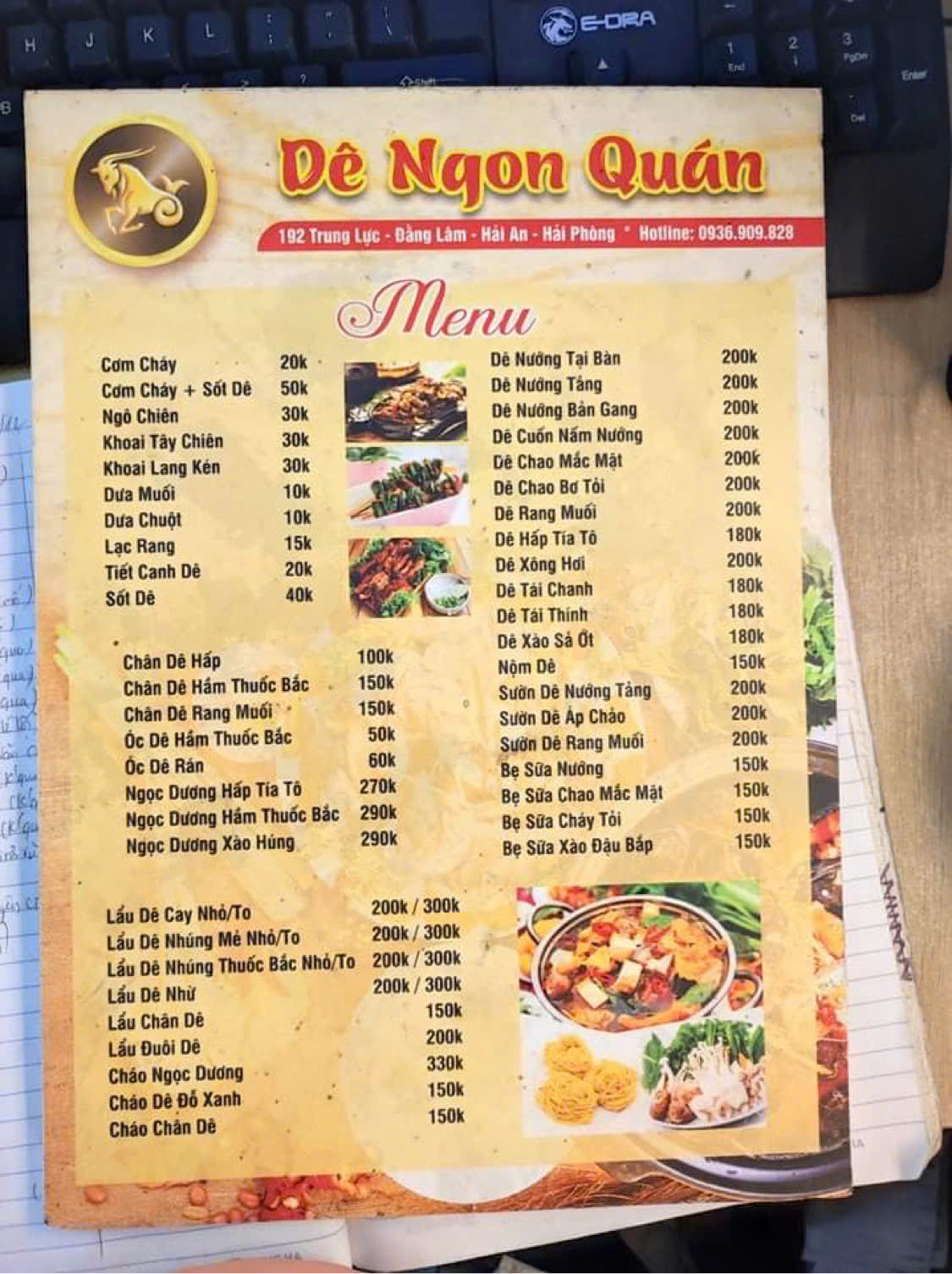 Khám phá menu tại nhà hàng Dê Ngon Quán Hoàng Huy Riverside