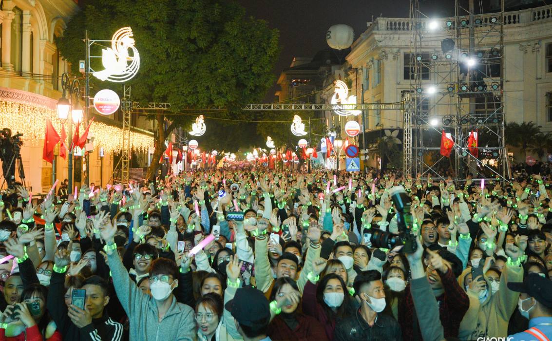 Countdown tại Hà Nội luôn mang màu sắc rất riêng. Từ đầu tối, khu vực quanh quảng trường đã sáng rực với âm nhạc và dòng người đổ về. Sân khấu được dựng quy mô lớn, kết hợp màn hình LED và hiệu ứng ánh sáng. Đêm giao thừa tại đây luôn đông vui, trẻ trung và tràn đầy năng lượng. Mọi người cùng đếm ngược từng giây và chào năm mới trong tiếng reo hò đầy cảm xúc.