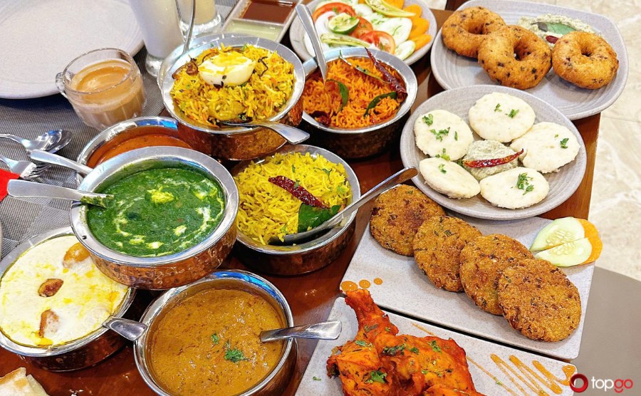 • Món ăn đặc trưng: cuộn gà Ấn độ, pani puri, aloo palak, curd rice, fish curry, cừu masala, tôm tandoori, papdi chaat,….