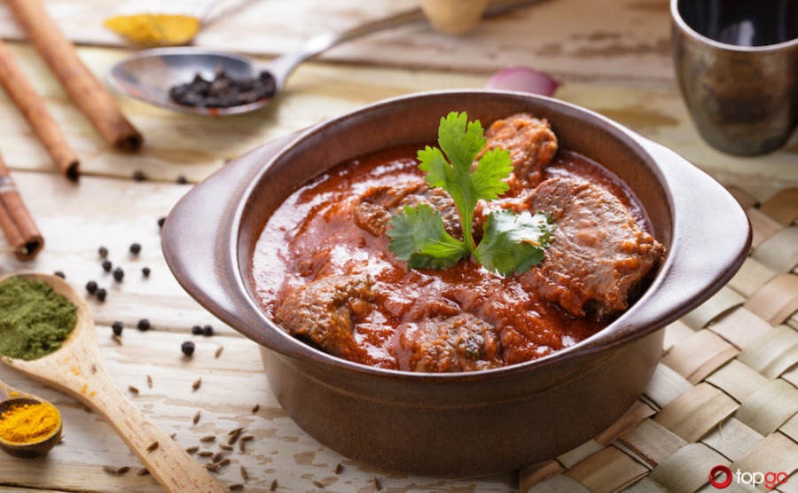 Thịt cừu được hầm chậm cùng hỗn hợp masala đậm vị. Nước sốt đặc sánh thấm đều từng thớ thịt. Vị cay, béo, thơm kết hợp hoàn hảo, mang lại cảm giác ấm áp và tròn đầy.