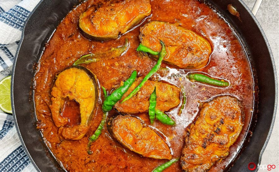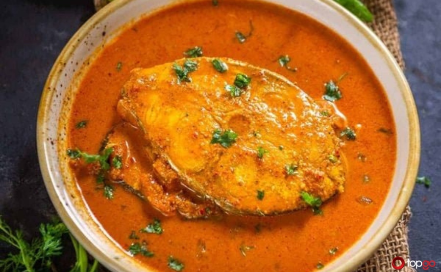 Fish curry tại Hệ thống Indian Kitchen Hải Phòng được chế biến từ cá tươi, nấu cùng nước sốt cà chua, nghệ, thìa là và ớt khô.