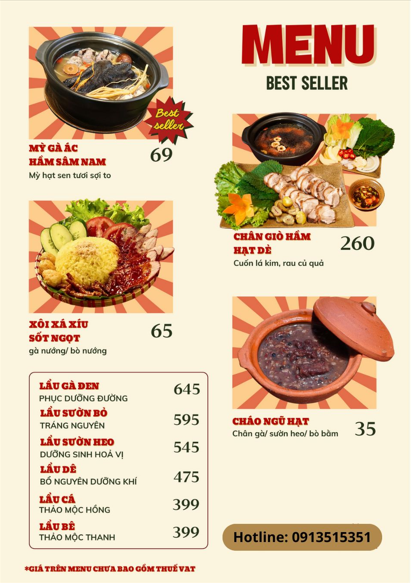 Thực đơn Ming Zhu được xây dựng rõ ràng và dễ lựa chọn. Các món hầm dược thiện giữ vai trò trung tâm trải nghiệm. Mỳ sen tươi gà ác hầm sâm là món được nhiều thực khách yêu thích. Hương vị thanh nhẹ giúp dễ ăn và dễ hấp thu. Chân giò hầm hạt dẻ có vị đậm nhưng không gây cảm giác nặng bụng. Lẩu sườn bò Trạng Nguyên phù hợp cho nhóm khách đông người. Món lẩu tạo cảm giác ấm áp và kết nối trong bữa ăn. Cháo ngũ hạt nhẹ bụng và phù hợp nhiều độ tuổi. Xôi gà nướng sốt thảo dược tạo dấu ấn riêng của nhà hàng. Mỗi món đều chú trọng dinh dưỡng và cảm giác sau khi dùng.
