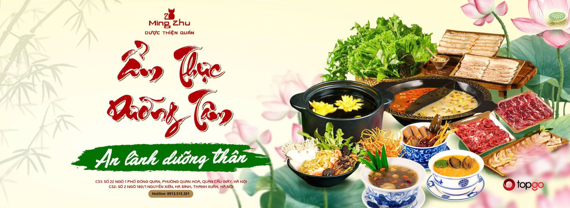 Để được tư vấn và đặt chỗ tại nhà hàng Ming Zhu – Dược Thiện Quán, liên hệ hotline 0913515351 để được hỗ trợ nhanh chóng.