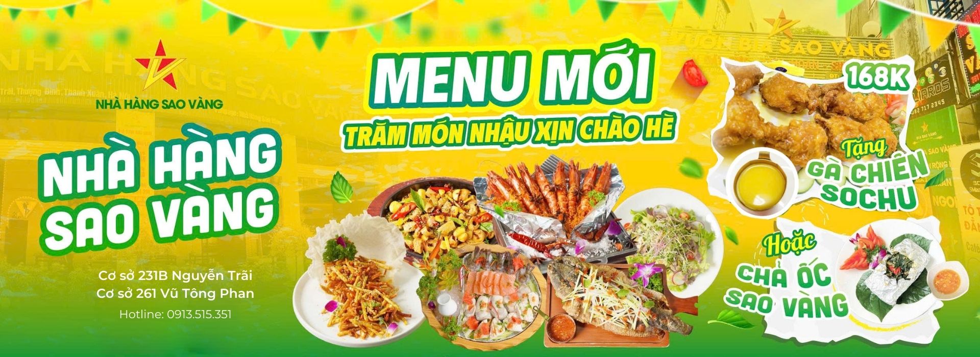 Nếu bạn đang tìm một địa chỉ ẩm thực tinh tế, không gian chuẩn chỉnh, phục vụ chuyên nghiệp với mức giá dễ chịu, thì Hệ thống nhà hàng Sao Vàng chắc chắn sẽ khiến bạn hài lòng. Không gò bó như những nhà hàng truyền thống, cũng không quá ồn ã như mô hình quán nhậu phổ thông, Sao Vàng tạo nên một dấu ấn riêng: thanh lịch, hiện đại, sạch sẽ và đầy sự thoải mái.