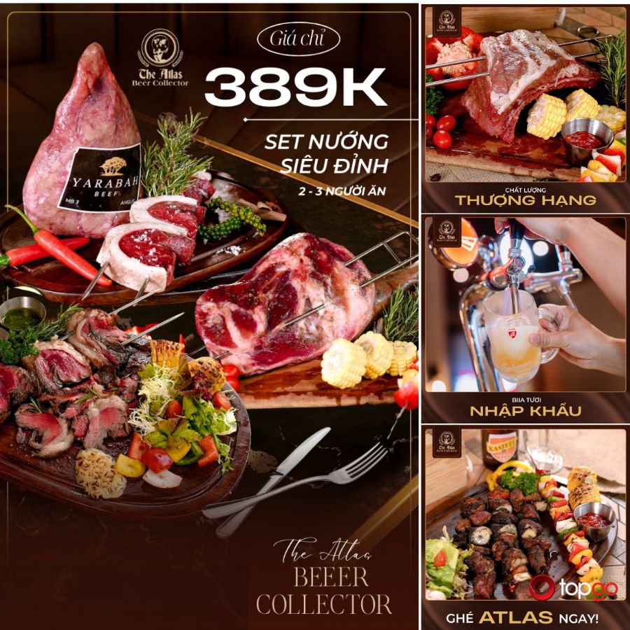 Tại The Atlas Beeer Collector, “nướng tùng xẻo” là một nghệ thuật trải nghiệm: thịt được xẻo trực tiếp từ tảng lớn, cắt ra vừa vặn đến từng lát. Mỗi miếng thịt nóng hổi, thơm ngậy chính là khoảnh khắc vị giác thăng hoa ngay tại bàn. Với Set Nướng Tùng Xẻo Thịt Thượng Hạng – 389K/set, thực khách sẽ được “chu du” trong thế giới thịt cao cấp: