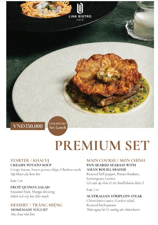 Bạn cũng có thể ghé Aqua Sky Bar vào mỗi bữa trưa để thưởng thức menu nu với những set hấp dẫn.
