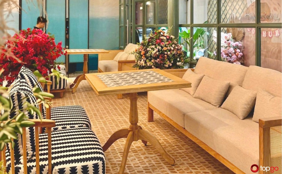 Ánh sáng tự nhiên được tận dụng tối đa qua những khung cửa kính lớn, tạo cảm giác thoáng đãng và ấm cúng. Mỗi chi tiết trong không gian đều được chăm chút kỹ lưỡng. Từ bộ bàn ghế gỗ tinh tế cho đến những bức tranh tường mang hơi thở nghệ thuật.