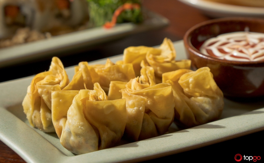 Hoành thánh chiên giòn cay gây ấn tượng bởi lớp vỏ vàng óng, giòn tan, ôm trọn phần nhân rau củ đậm vị. Món ăn có chút cay nhẹ, đủ để kích thích vị giác mà không gây nặng nề.