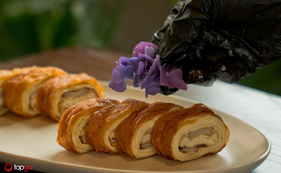 Đây là món ăn vừa thú vị vừa tinh tế, thể hiện sự sáng tạo trong chế biến của các đầu bếp tại Chay Ngọc Chi Bà Nà Hills.