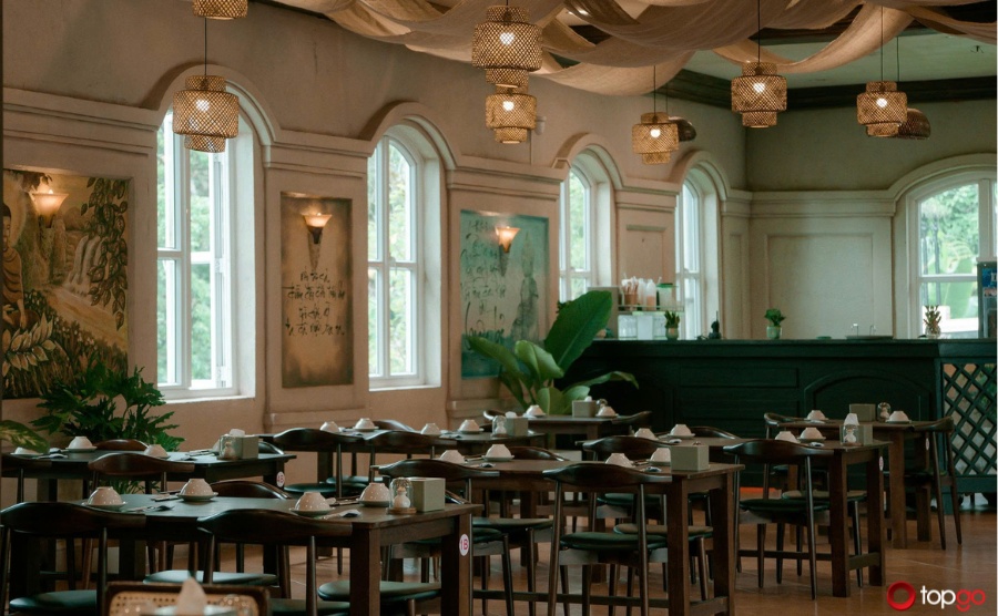 Một điểm nhấn không thể bỏ qua chính là âm nhạc nhẹ nhàng vang lên khắp không gian. Giai điệu êm dịu giúp thực khách thư giãn và thả lỏng tâm trí. Dùng bữa tại Chay Ngọc Chi Bà Nà Hills vì vậy không chỉ là trải nghiệm ẩm thực, mà còn là hành trình tìm lại sự cân bằng và bình yên.