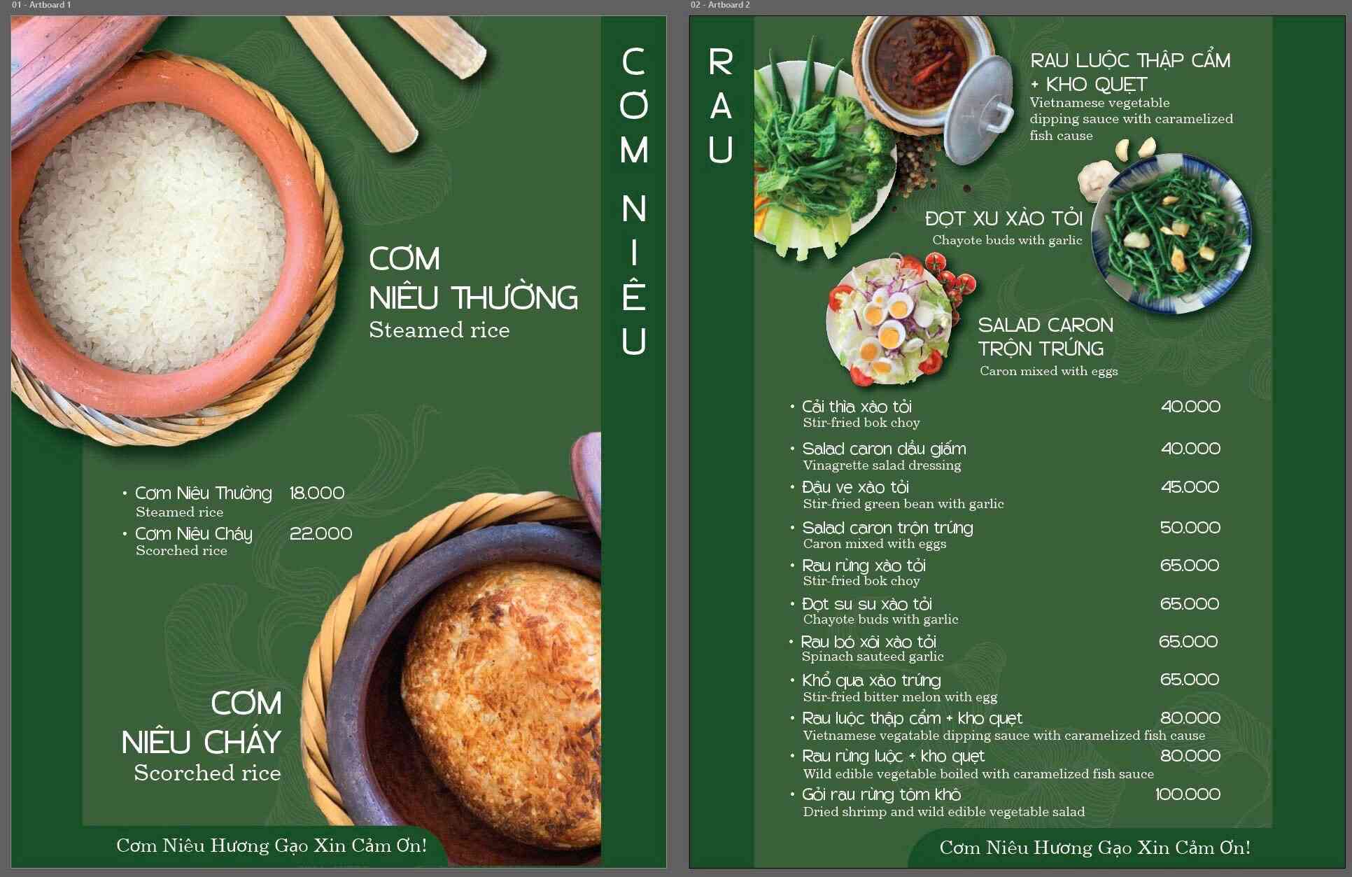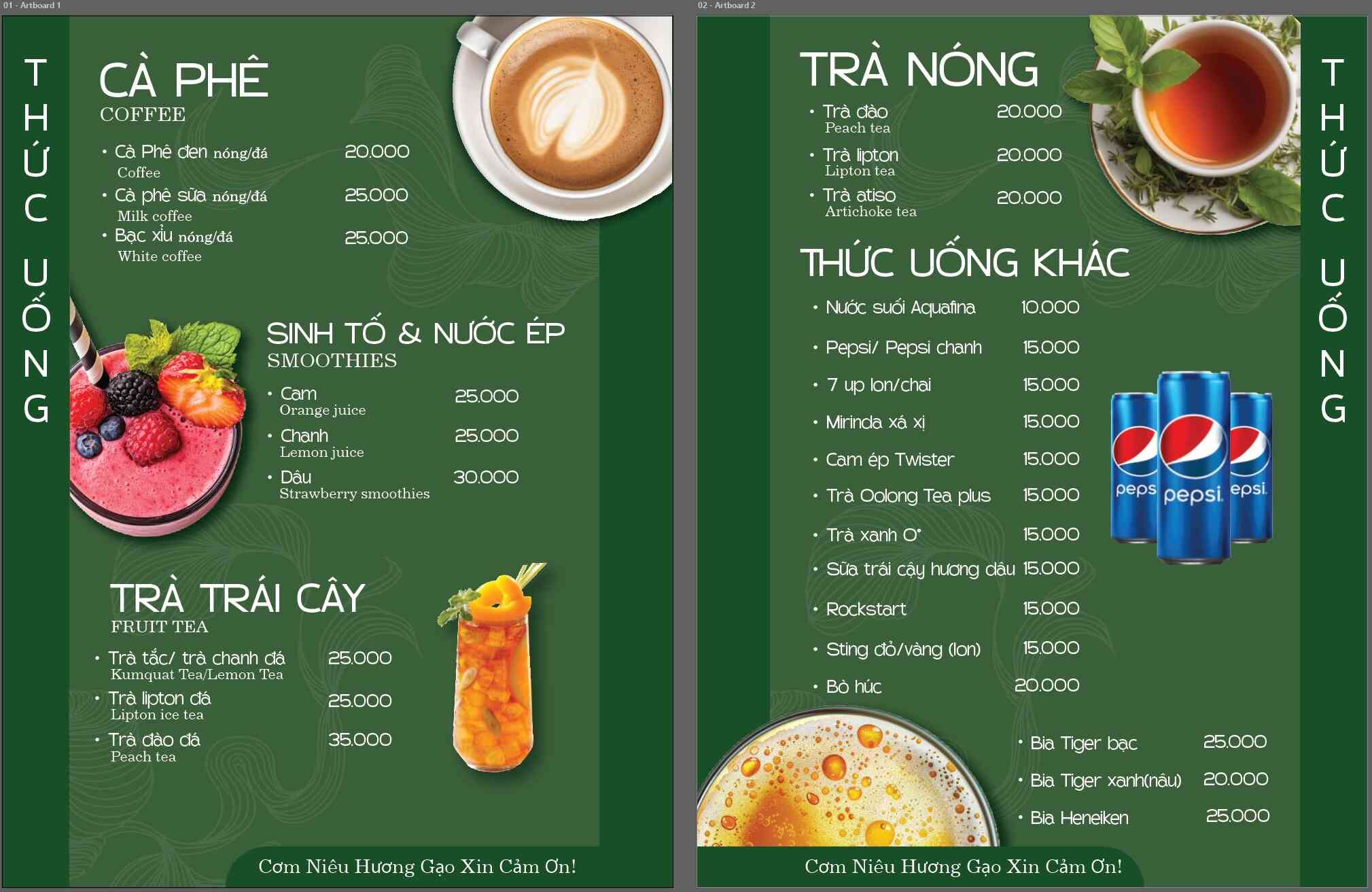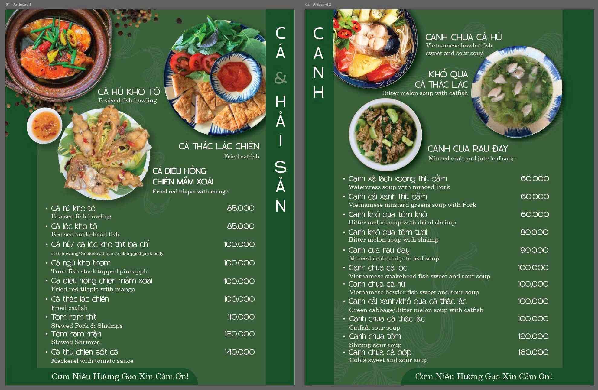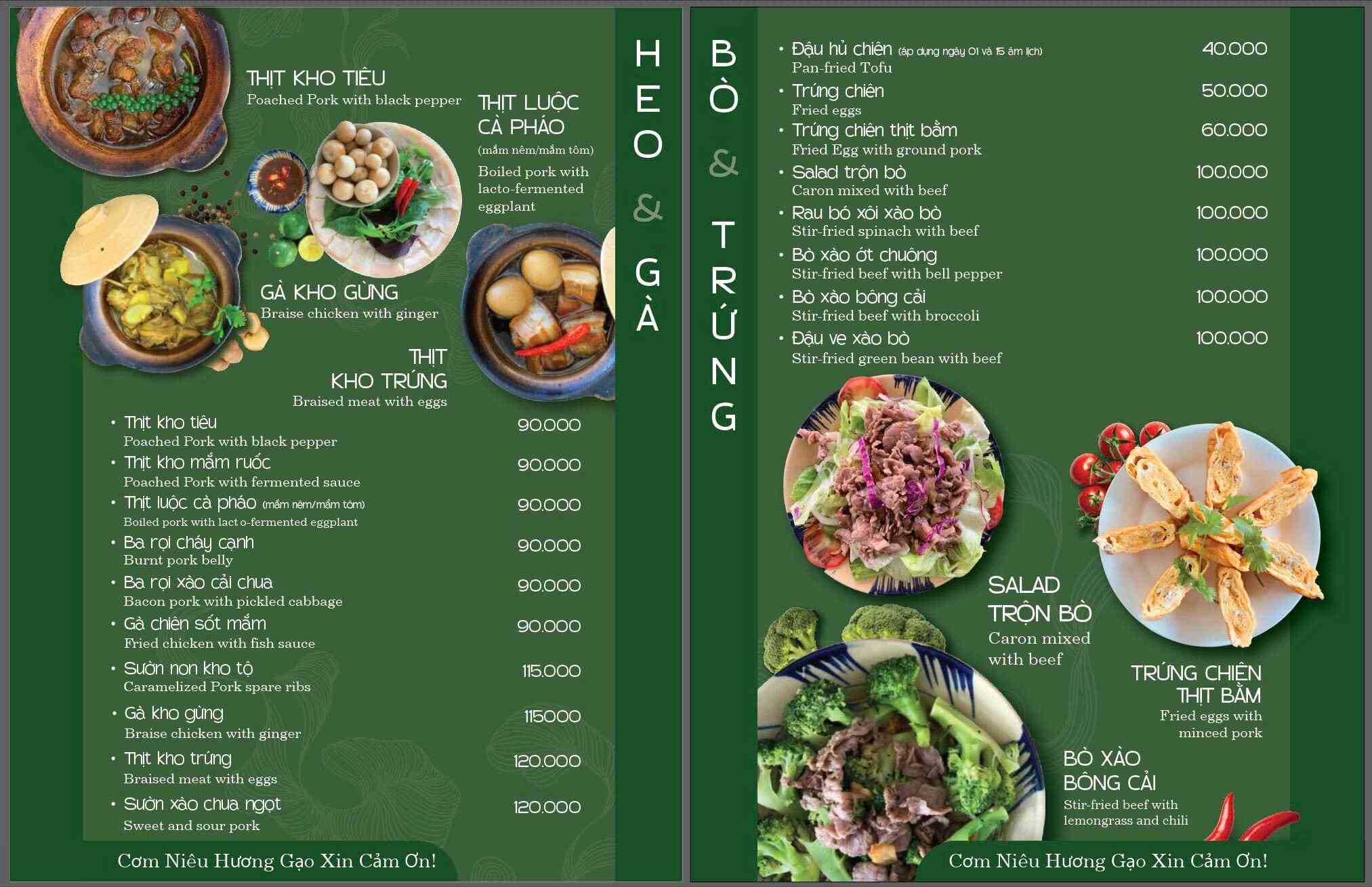 Click vào MENU để xem thực đơn