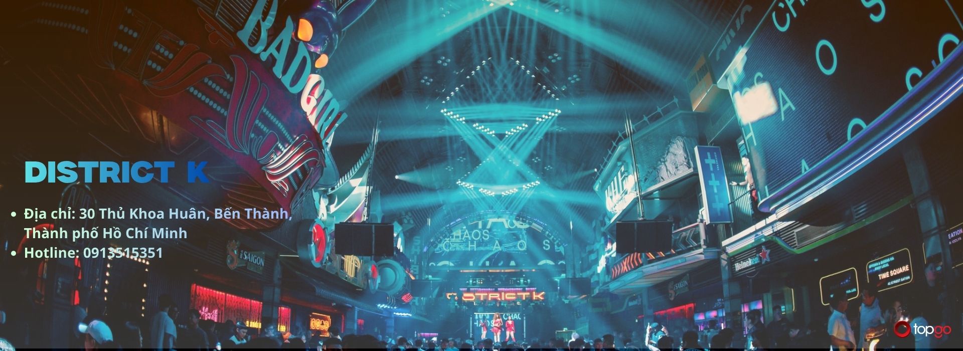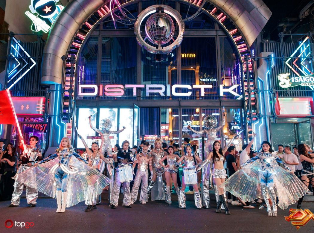 District K gây ấn tượng ngay từ ánh nhìn đầu tiên. Không gian bên trong District K tạo cảm giác như một lễ hội âm nhạc thu nhỏ ngay giữa lòng Sài Gòn. Thiết kế rộng, lối kiến trúc phóng khoáng mô phỏng các góc phố đêm của Hong Kong hay Las Vegas. Sân khấu LED khổng lồ là điểm nhấn nổi bật. Mỗi chương trình đều trở nên sống động hơn nhờ hiệu ứng ánh sáng hiện đại. Âm nhạc tại District K mang phong cách trẻ trung và bắt tai. Những giai điệu sôi động luôn đủ để khuấy động bầu không khí.