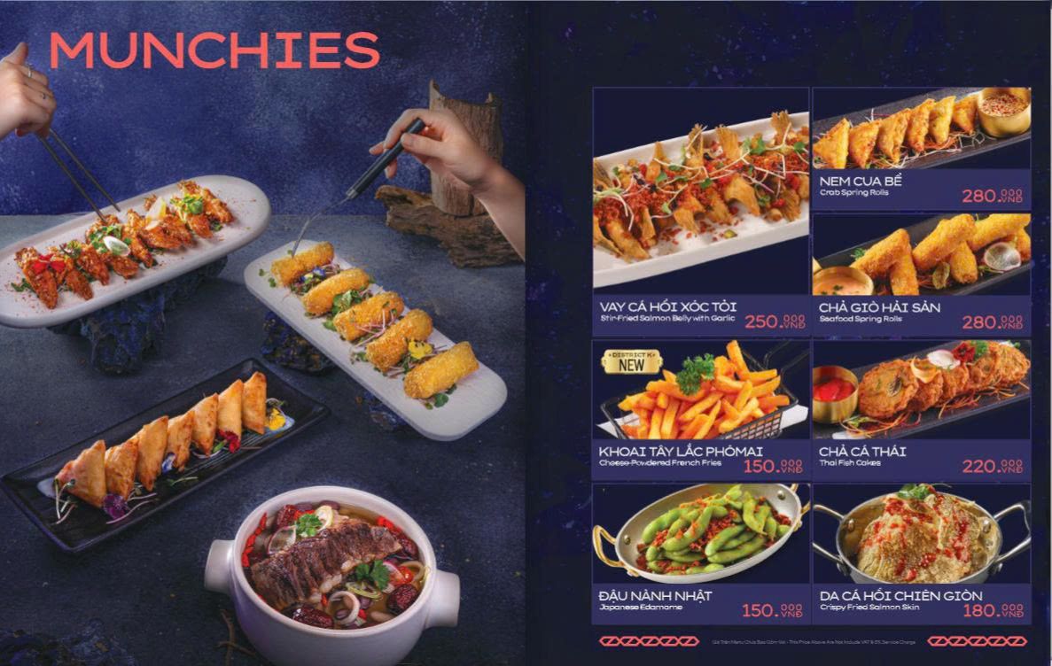Điểm đặc biệt là sự kết hợp giữa yếu tố giải trí và ẩm thực. District K không chỉ là nơi thưởng thức món ăn. Đây còn là nơi cảm nhận năng lượng của nhà hàng phố đêm sôi động, một “thành phố không ngủ”.