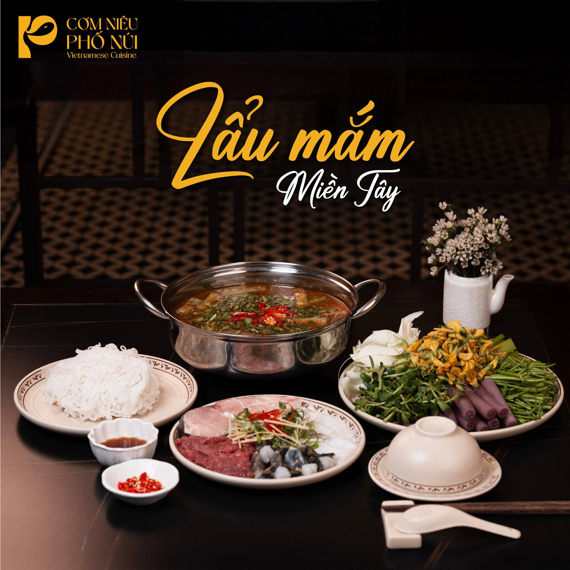 - LẨU MẮM MIỀN TÂY – Mắm cá dậy hương, kết hợp cá dứa, tôm mực tươi và các loại rau nhúng đặc trưng. Vị đậm đà, thơm ngon khó cưỡng.