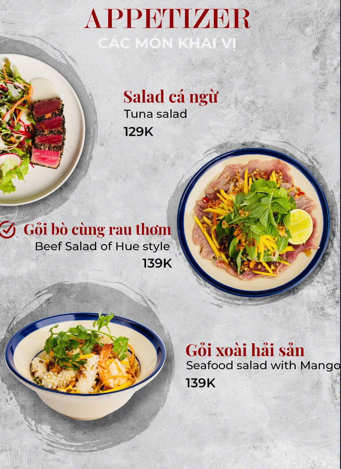 HotTuna phục vụ thực đơn mang phong cách Á – Âu với nhiều món chất lượng. Mỗi món được trình bày đẹp mắt. Cách nêm nếm cân bằng giữa vị Á và vị Âu giúp thực khách dễ ăn.