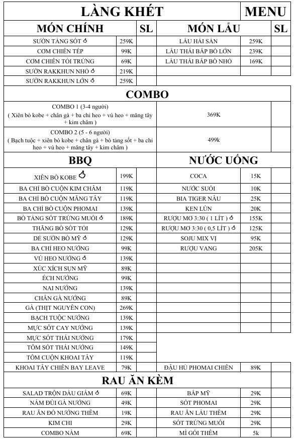 Làng Khét thuộc phân khúc quán nhậu bình dân với chất lượng cao, mức giá rất tương xứng với trải nghiệm không gian và dịch vụ.