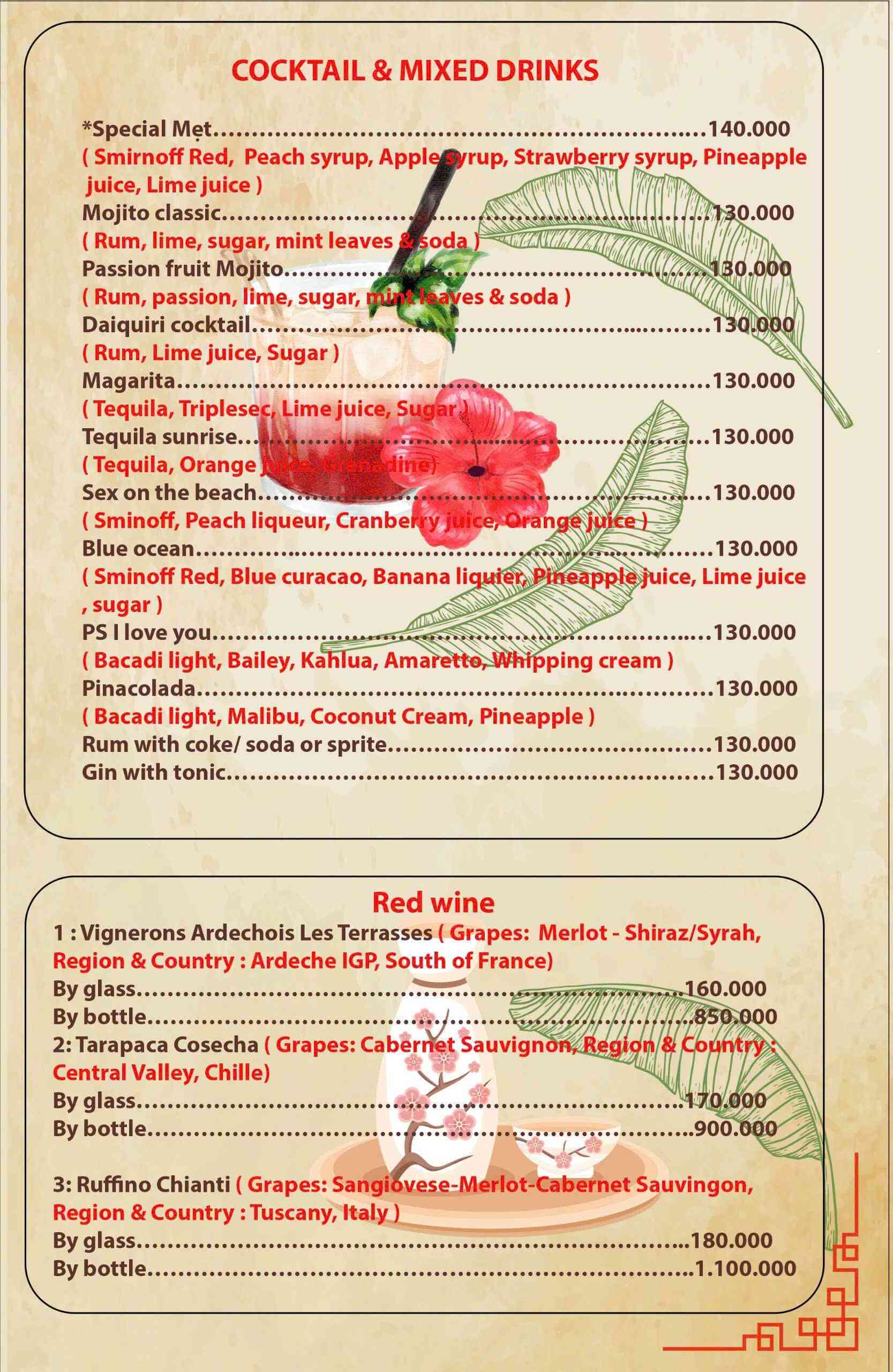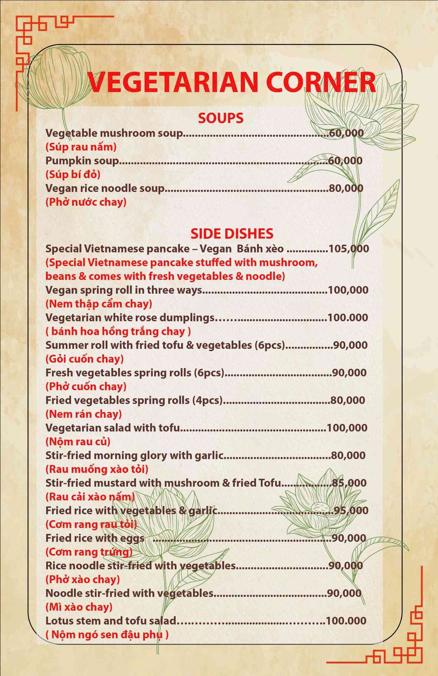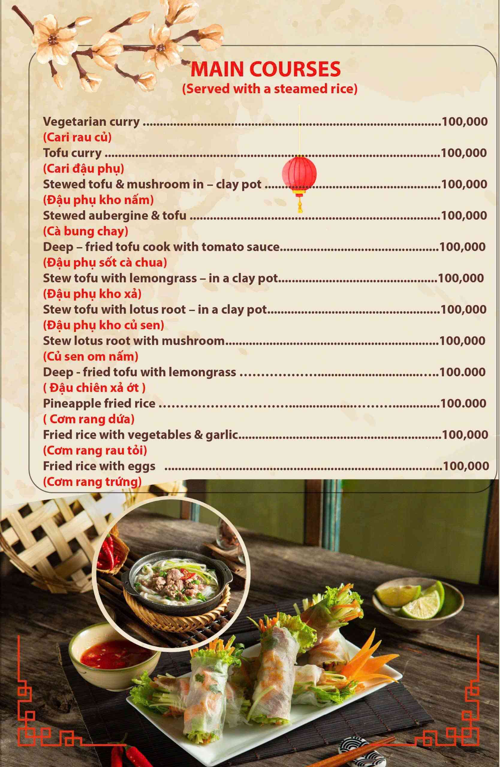 Tổng thể, thực đơn tại MẸT Hội An – Vietnamese Restaurant & Vegetarian Food được xây dựng theo hướng cân bằng giữa nhiều nhóm món khác nhau. Sự kết hợp giữa đặc sản địa phương, món quen thuộc và món chay giúp bữa ăn trở nên đầy đủ hơn. Cách sắp xếp rõ ràng cũng giúp thực khách dễ dàng lựa chọn món ăn phù hợp khi ghé Hội An.