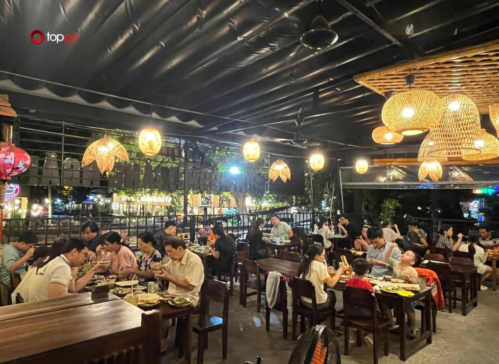 Dù không trang bị phòng lạnh, không gian tại đây vẫn luôn mát mẻ và dễ chịu nhờ sự thông thoáng tự nhiên. Điều này đặc biệt phù hợp với khí hậu địa phương cũng như thói quen sinh hoạt, ăn uống của người miền Trung. Phong cách không gian giản dị, không cầu kỳ nhưng ấm cúng, đúng tinh thần những quán ăn quê, nơi mọi người có thể thoải mái trò chuyện, chia sẻ và tận hưởng trọn vẹn hương vị món ăn trong một bầu không khí gần gũi và thân quen.