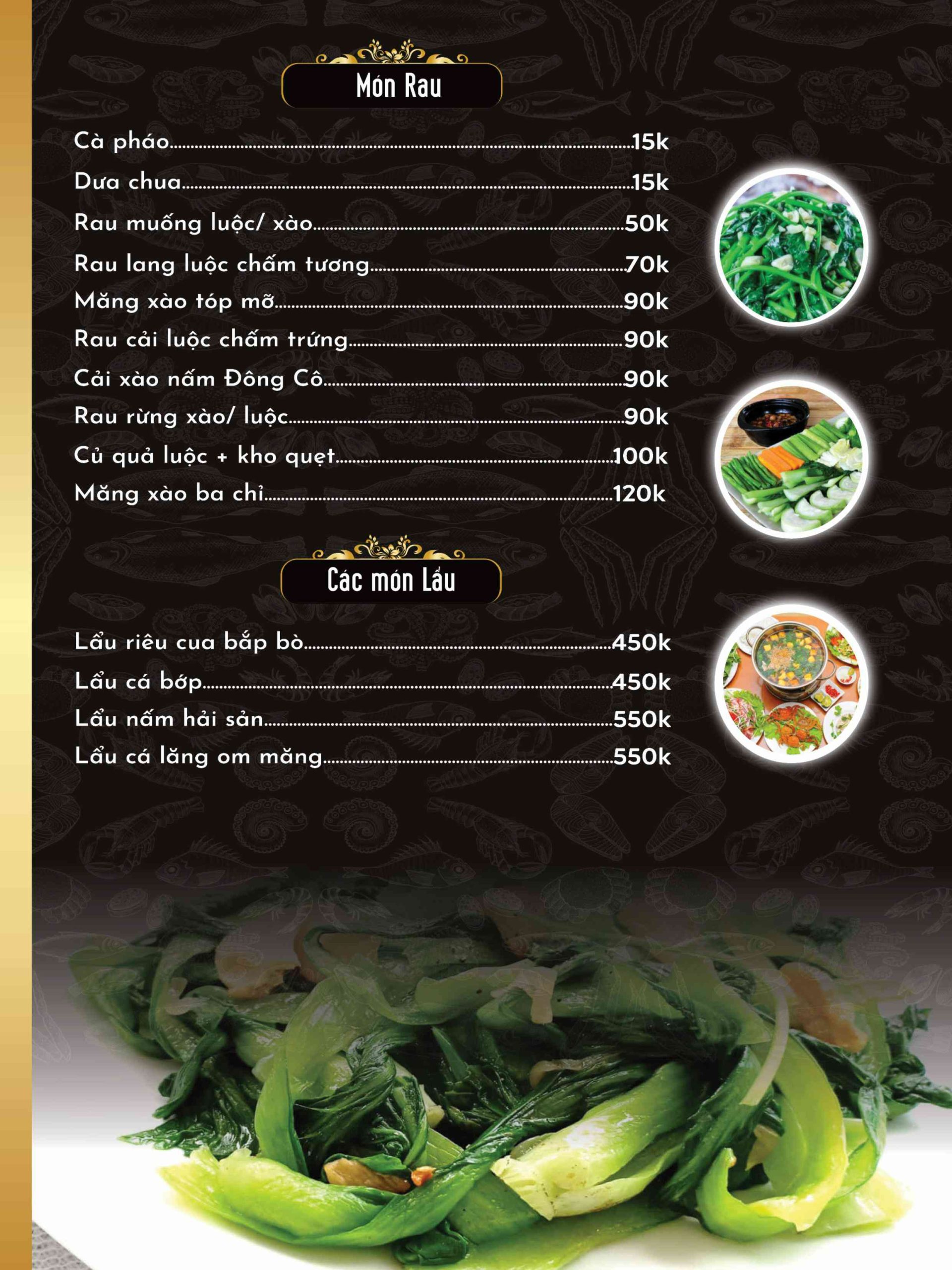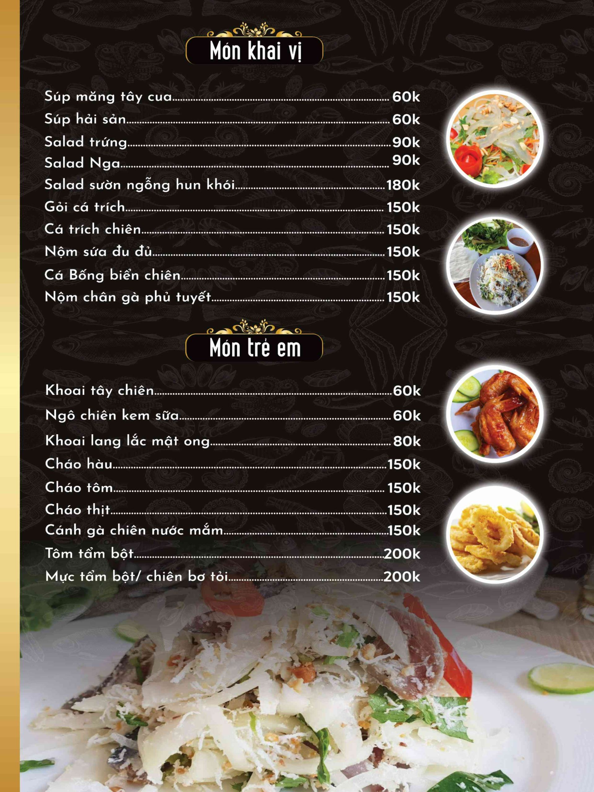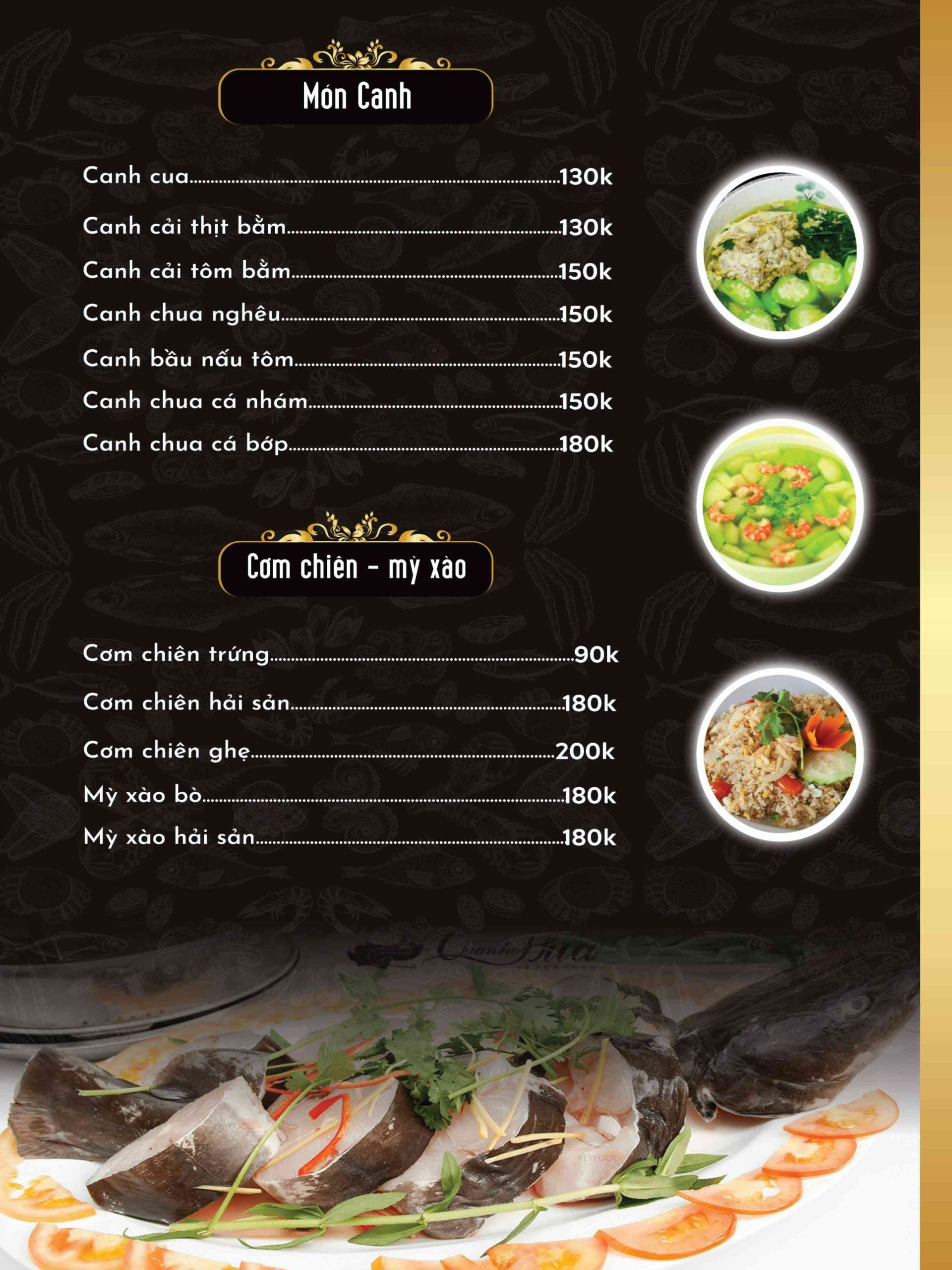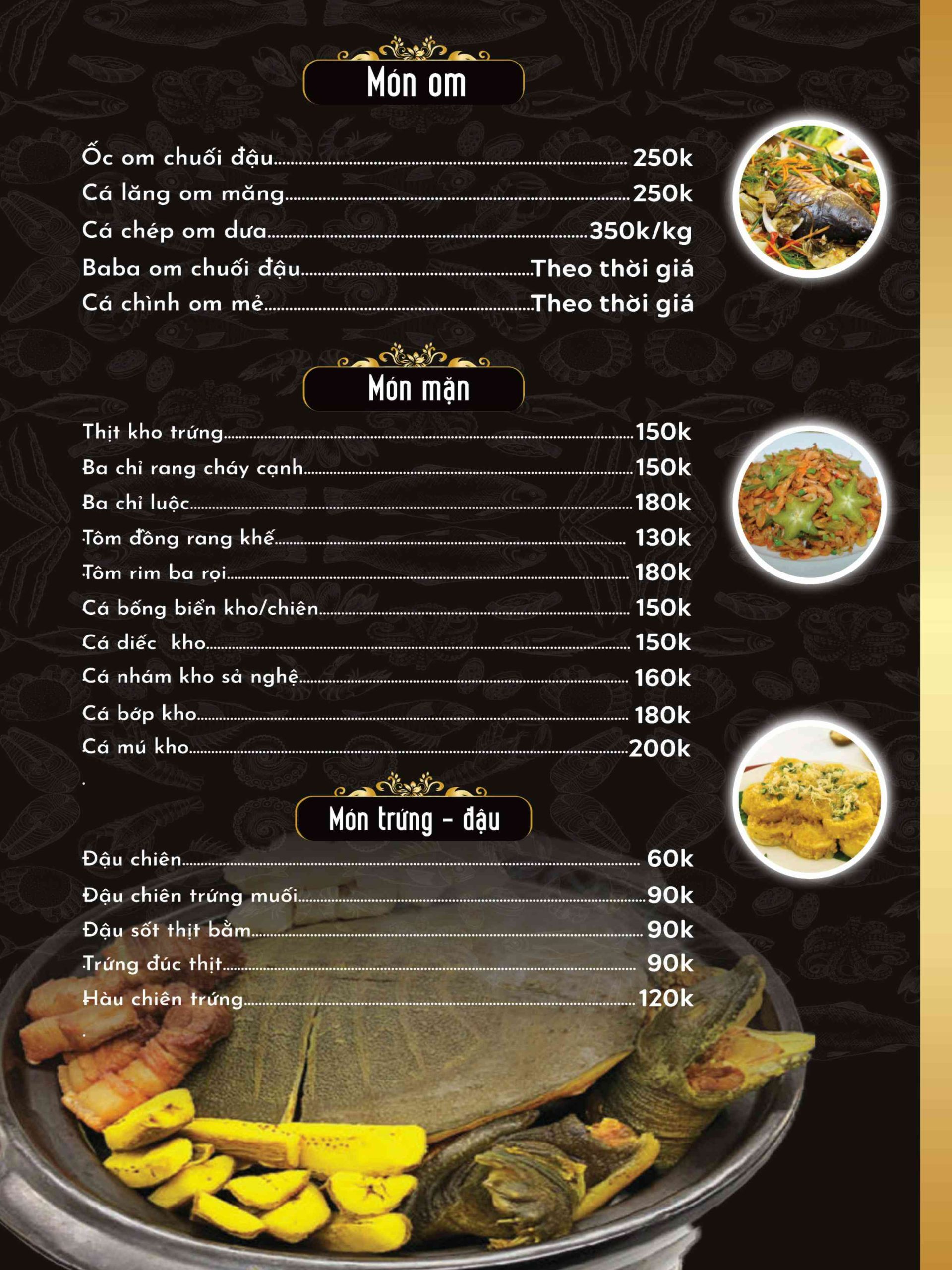- Món nổi bật: Cá chép om dưa, Ốc nhồi thịt hấp gừng, hải sản tươi sống, món vị Bắc