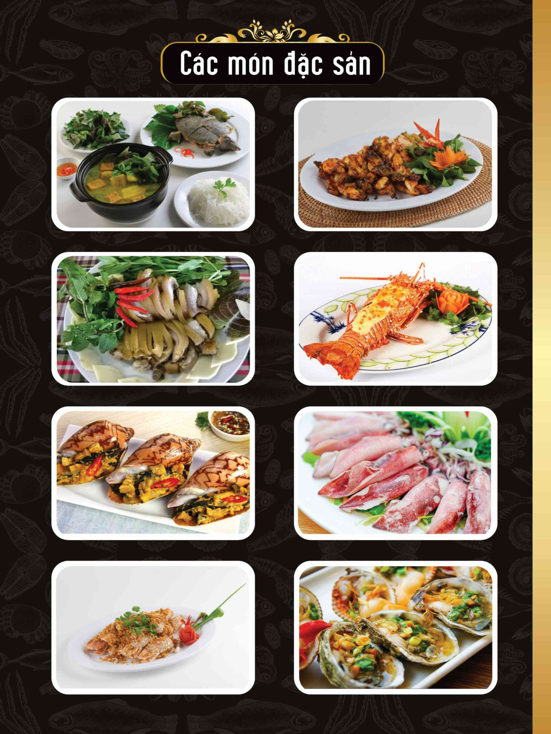 Ẩm thực tại Nhà hàng Biển Vàng Phú Quốc được xây dựng theo hướng dễ thưởng thức. Thực đơn phù hợp cho nhiều nhóm khách khác nhau. Thực đơn kết hợp giữa hải sản tươi sống và các món mang hương vị Bắc quen thuộc, tạo sự cân bằng và gần gũi.