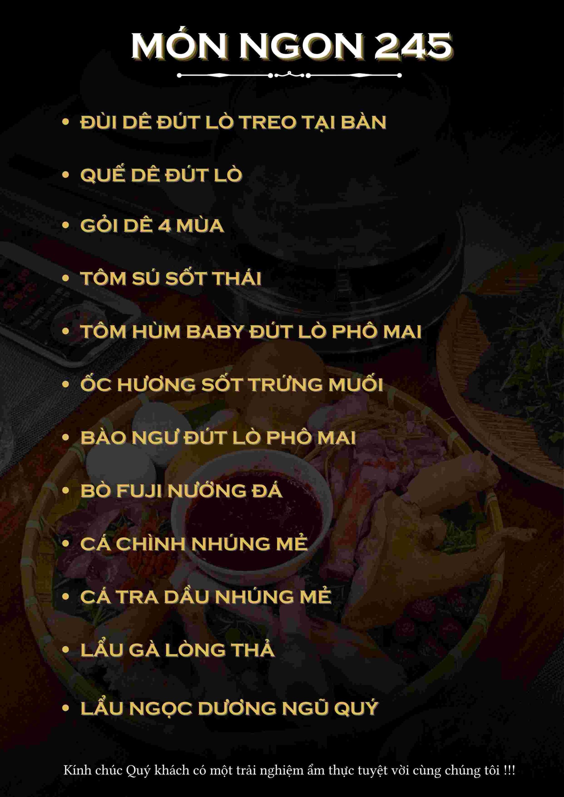 Dê là linh hồn của quán. Đó cũng là một trong những lý do khiến nhà hàng Dê Cua 245 Hoa Lan nổi danh. Quán nổi tiếng với thịt dê tươi. Thịt dê được tuyển chọn nghiêm ngặt và chế biến công phu. Món ăn giữ trọn vị ngọt tự nhiên.