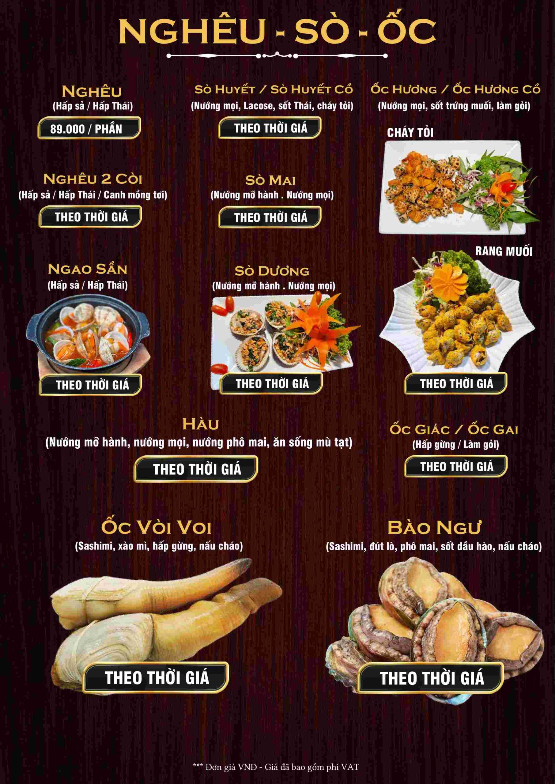 Món nổi bật: lẩu dê, vú dê nướng, cua sốt me, cua rang muối, nghêu hấp, tôm nướng, các món nhậu lai rai