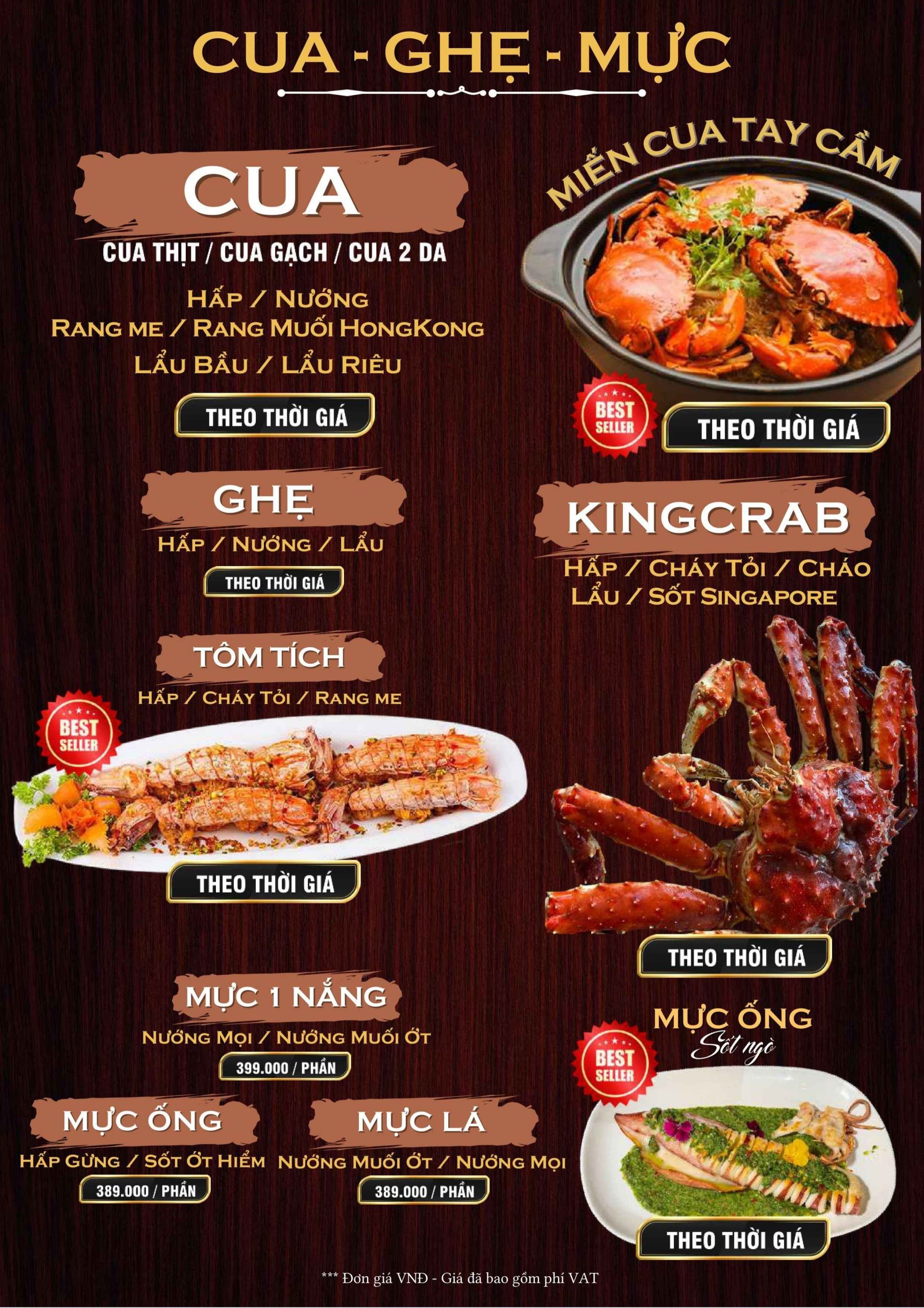 Nhà hàng mang đến cảm giác gần gũi và đầy đủ của một bữa tiệc hải sản chất lượng. Mỗi món ăn là một sự kết hợp hoàn hảo với phong cách chế biến rất riêng. Với lợi thế mở cửa đến 2h sáng, khách có thể thoải mái gặp gỡ, trò chuyện và thưởng thức.