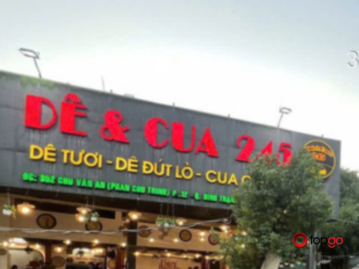 Dê Cua 245 có đủ các yếu tố khiến khách dễ hài lòng. Không gian rộng và thoải mái. Thực đơn phong phú với dê, cua và hải sản tươi mỗi ngày. Món ăn đậm vị, vừa miệng và dễ gọi theo nhóm. Giá hợp lý so với chất lượng món và vị trí trung tâm của quận Bình Thạnh.
