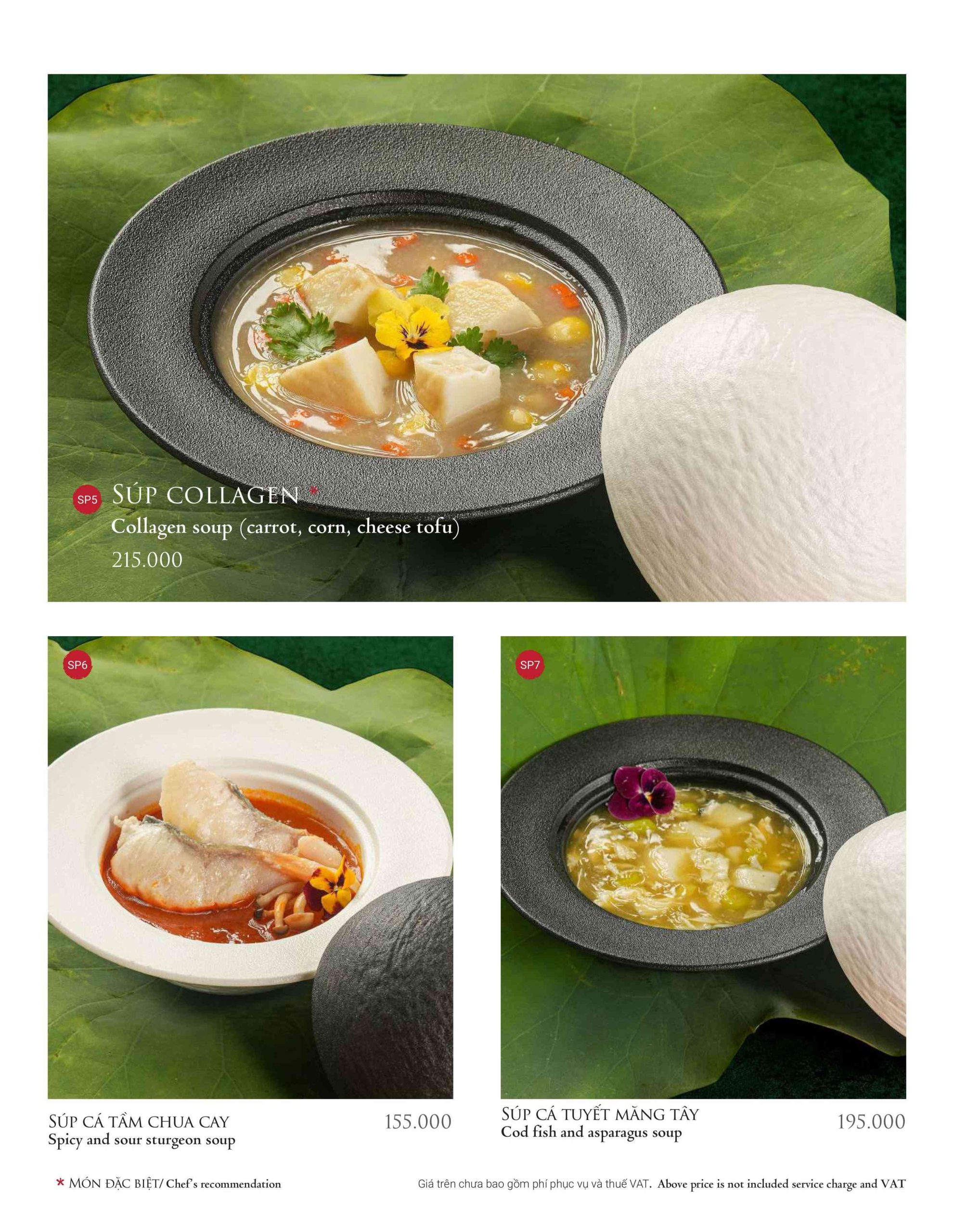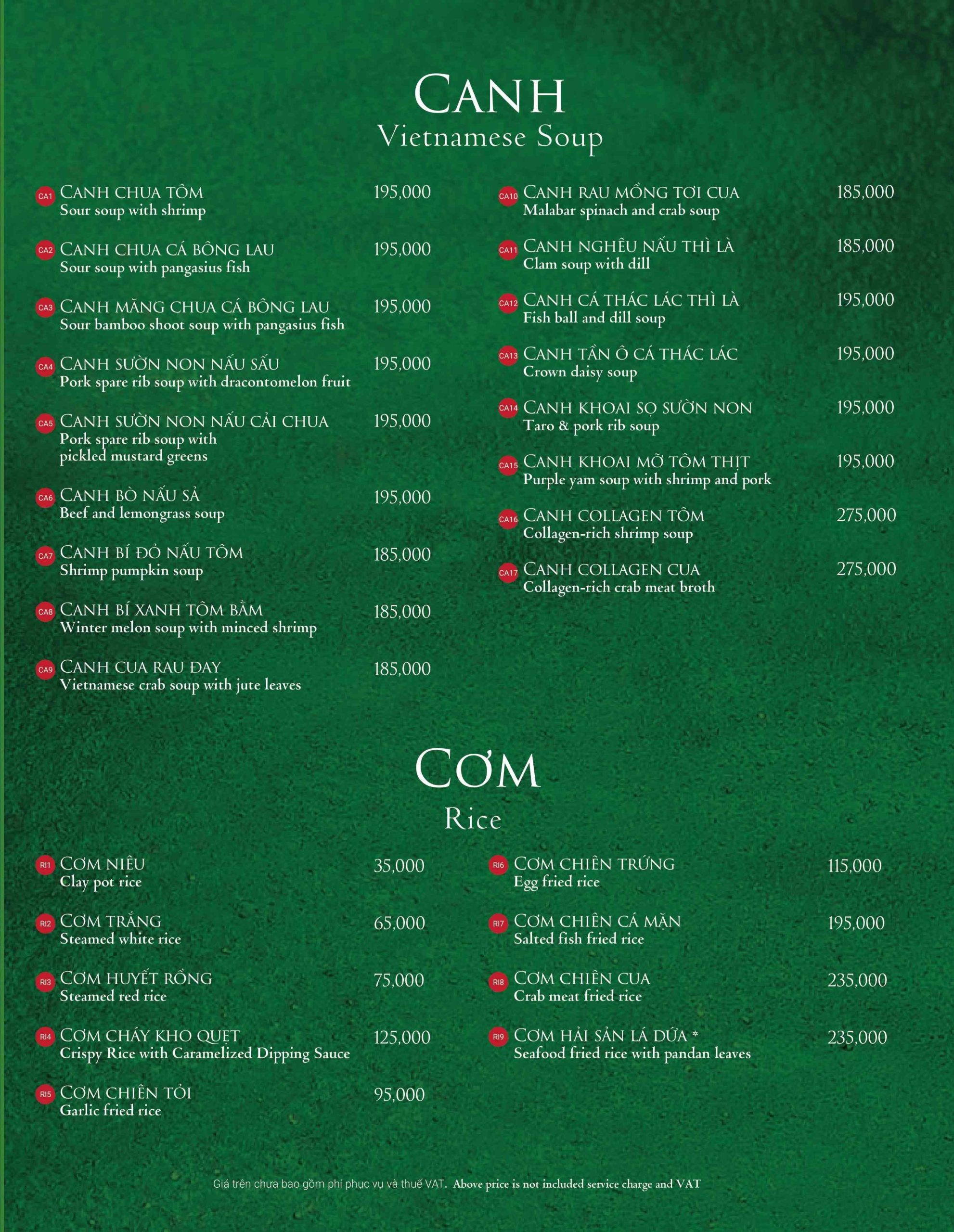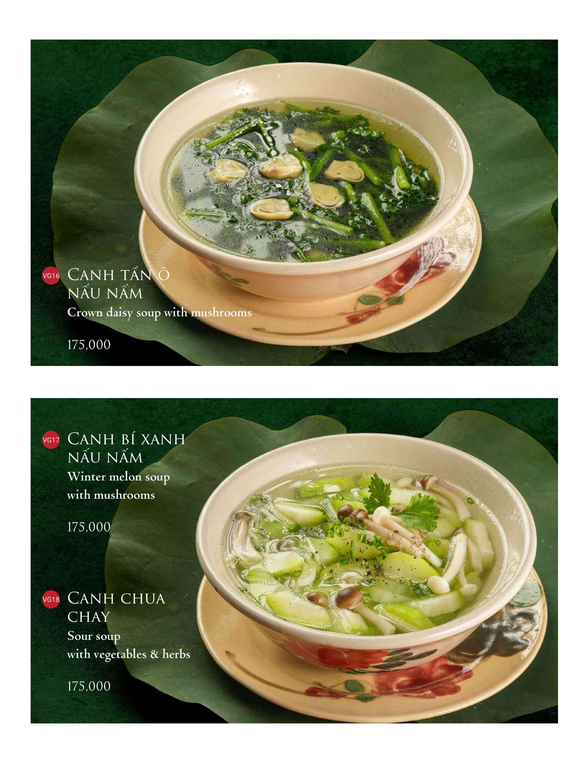 Không thể thiếu là bát canh – yếu tố cân bằng vị giác cho toàn mâm cơm. Nhà hàng thường sử dụng rau cải, rau ngót hoặc canh cua đồng nấu mồng tơi. Đều là những món canh dân dã, gắn liền với bữa cơm gia đình miền Bắc.