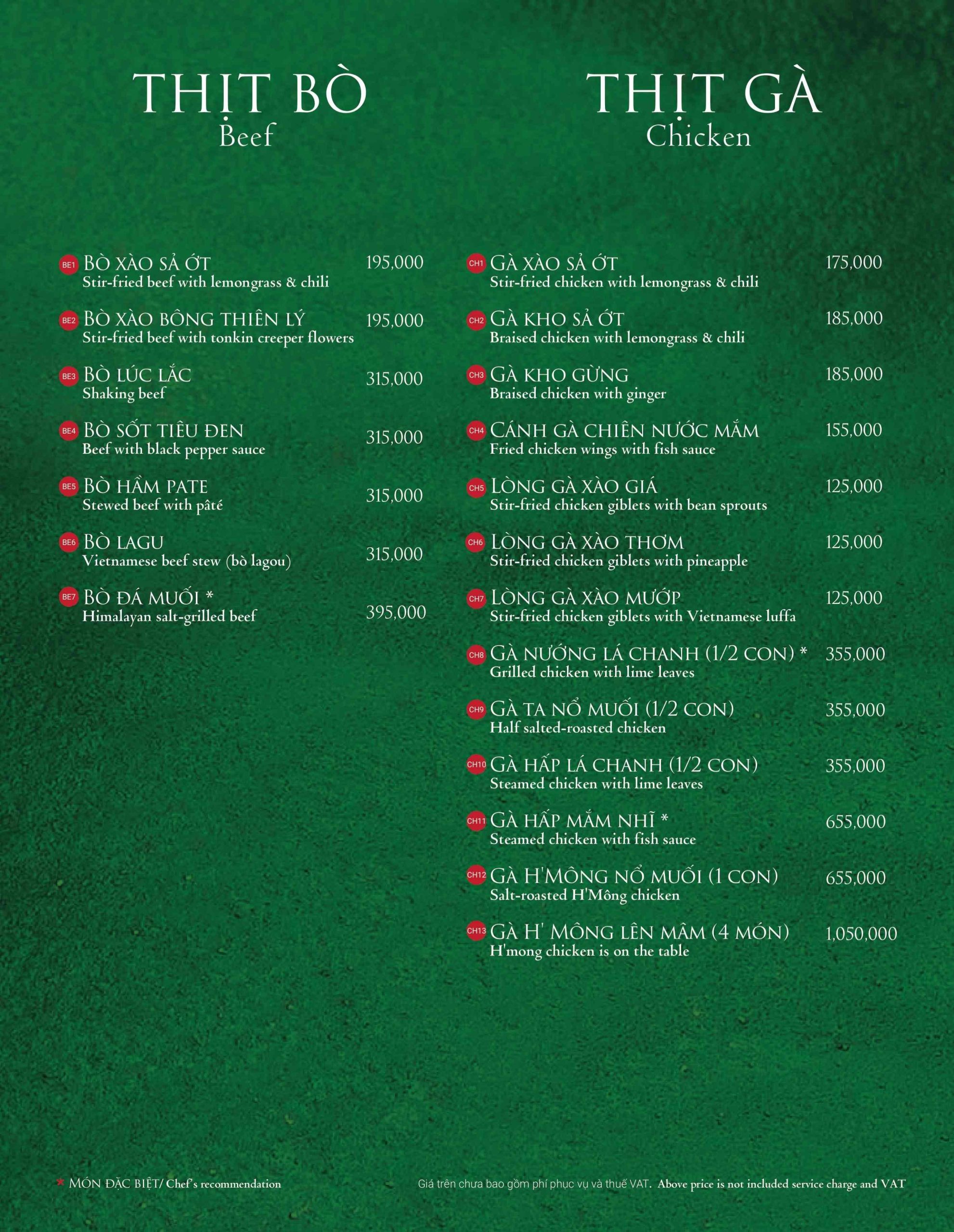 Menu Click vào MENU để xem thực đơn