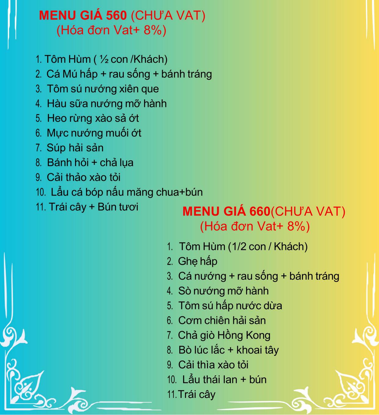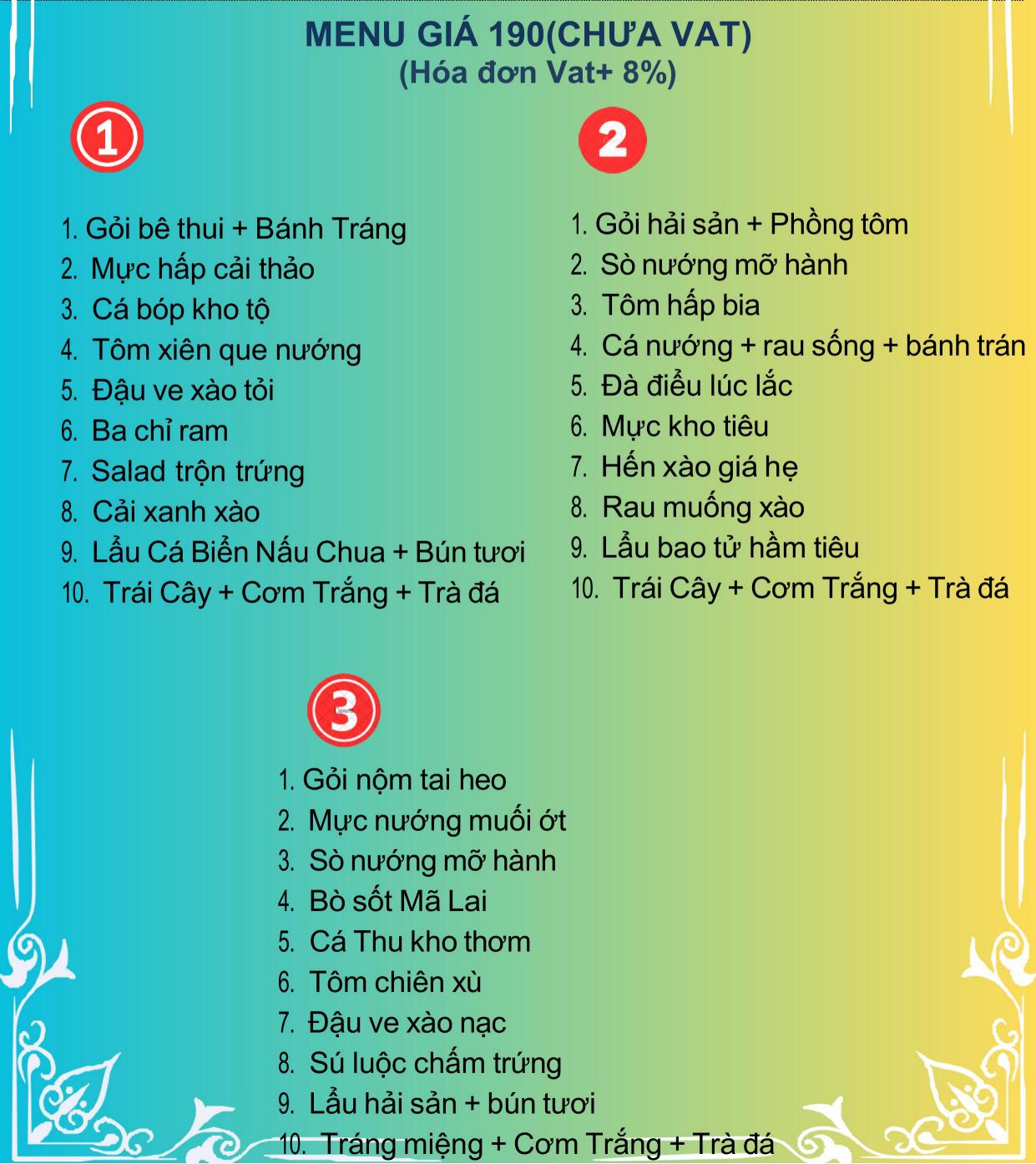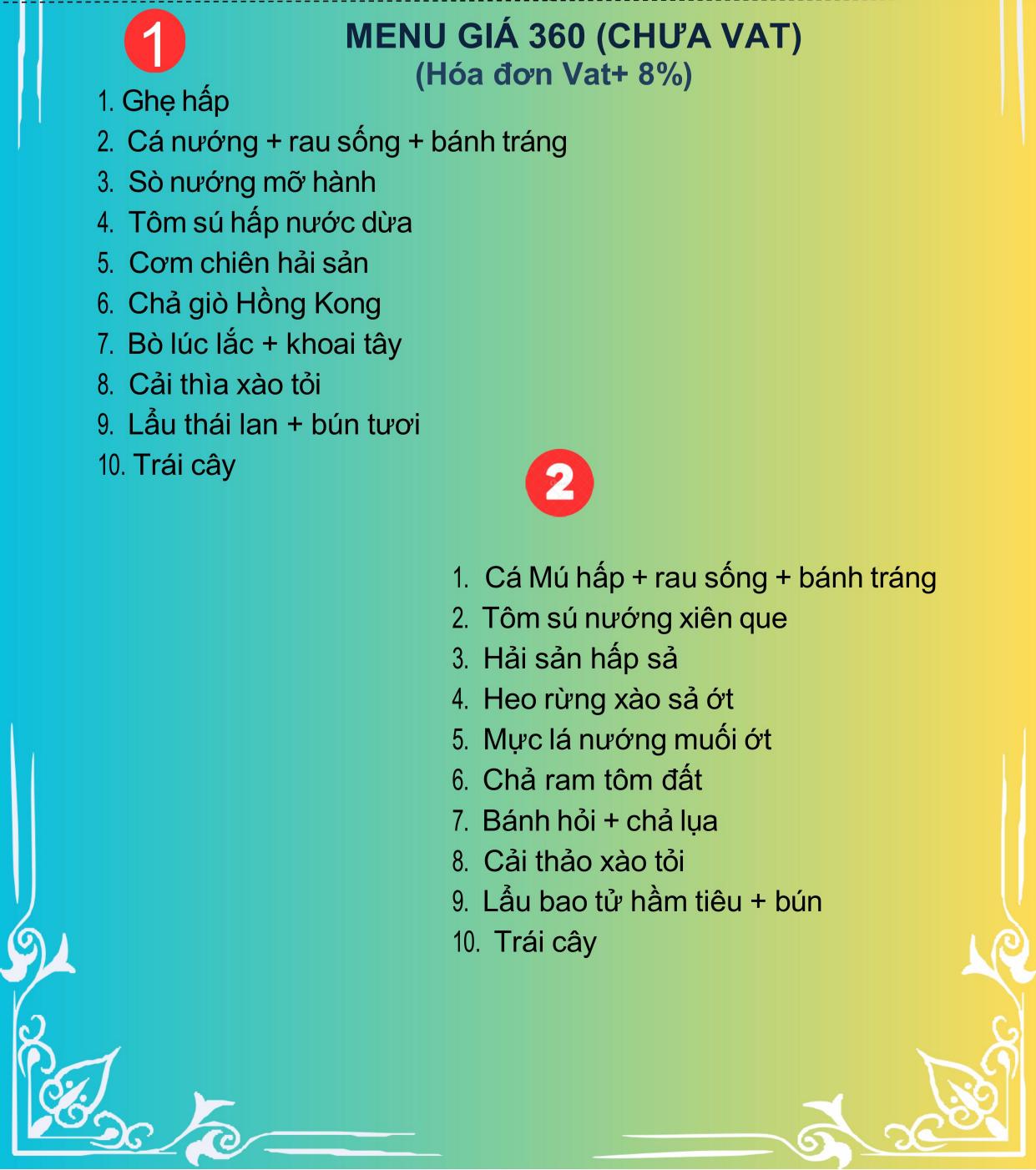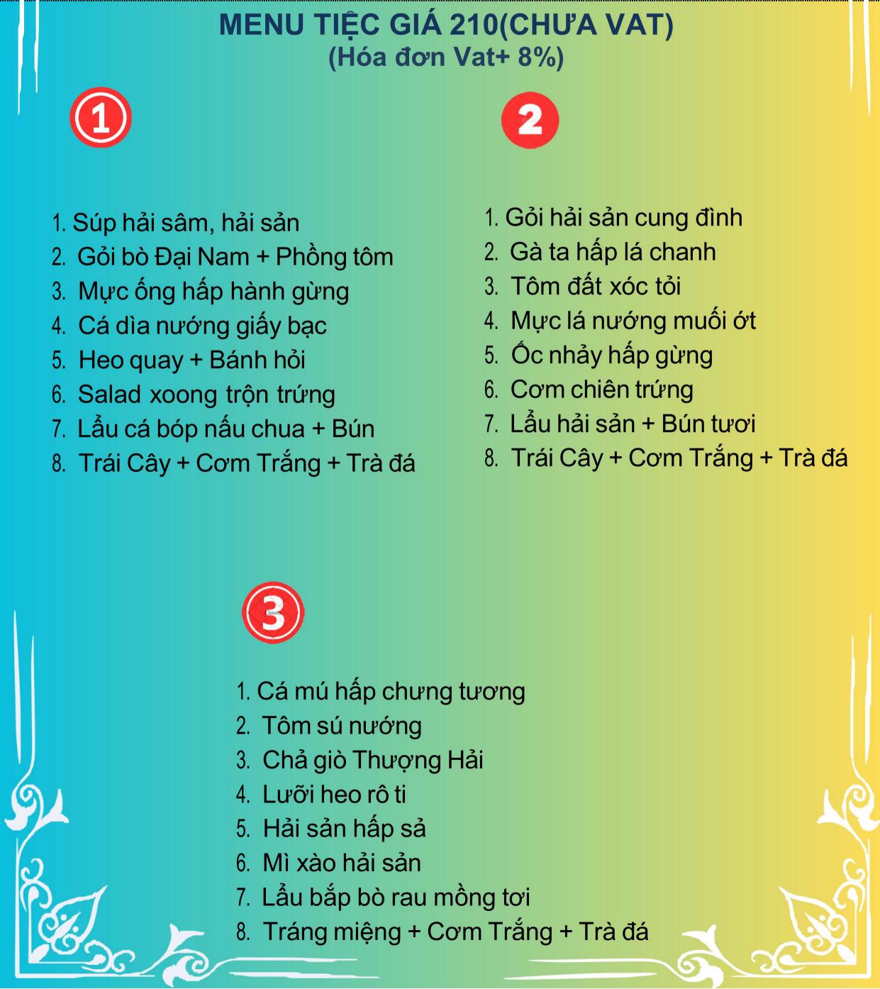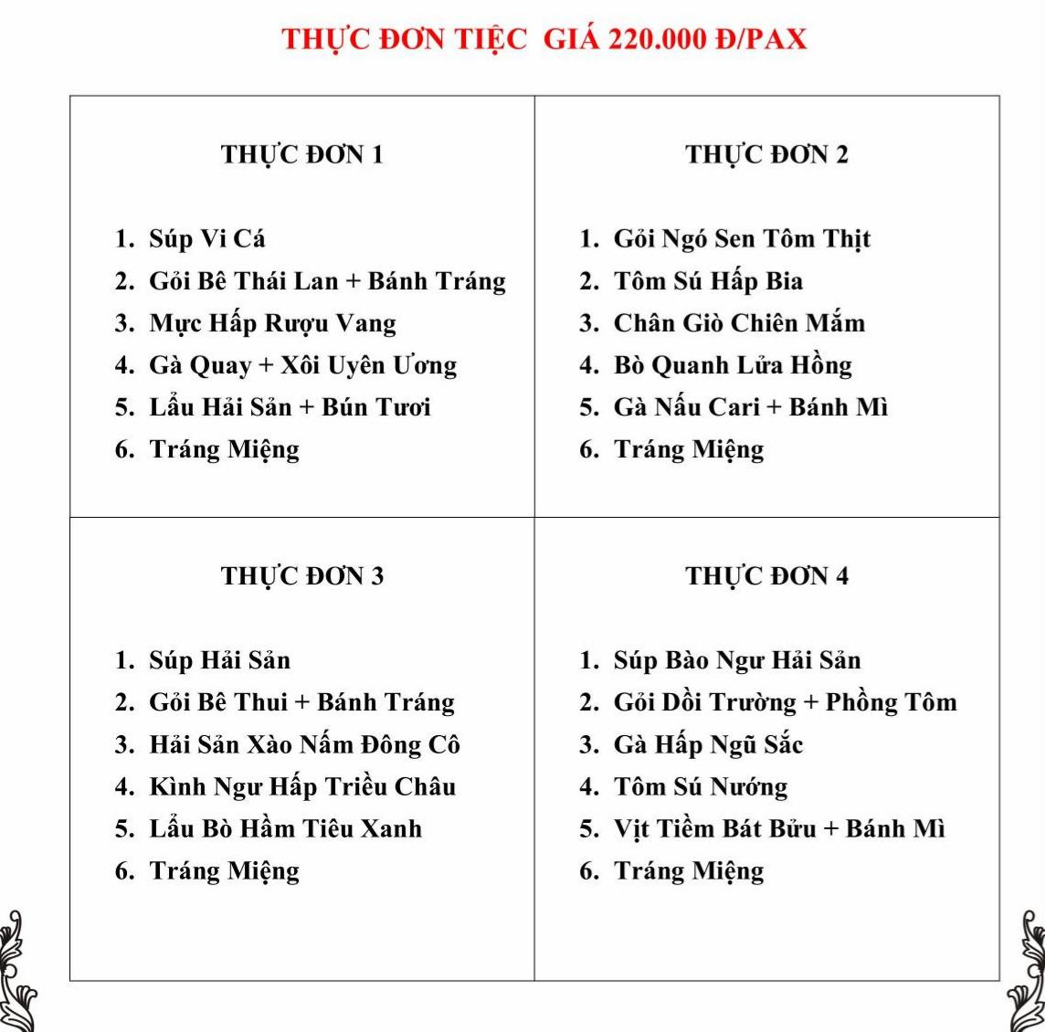 • Món nổi bật: Hải sản tươi sống, món Việt truyền thống, set menu tiệc đa dạng