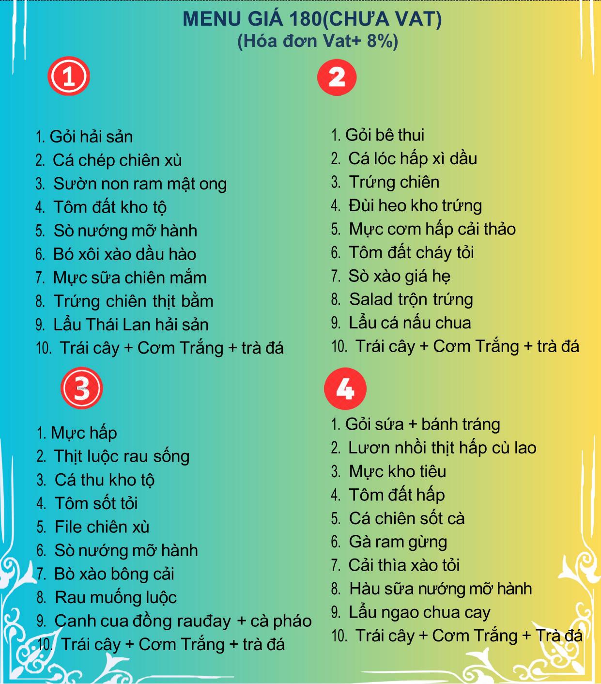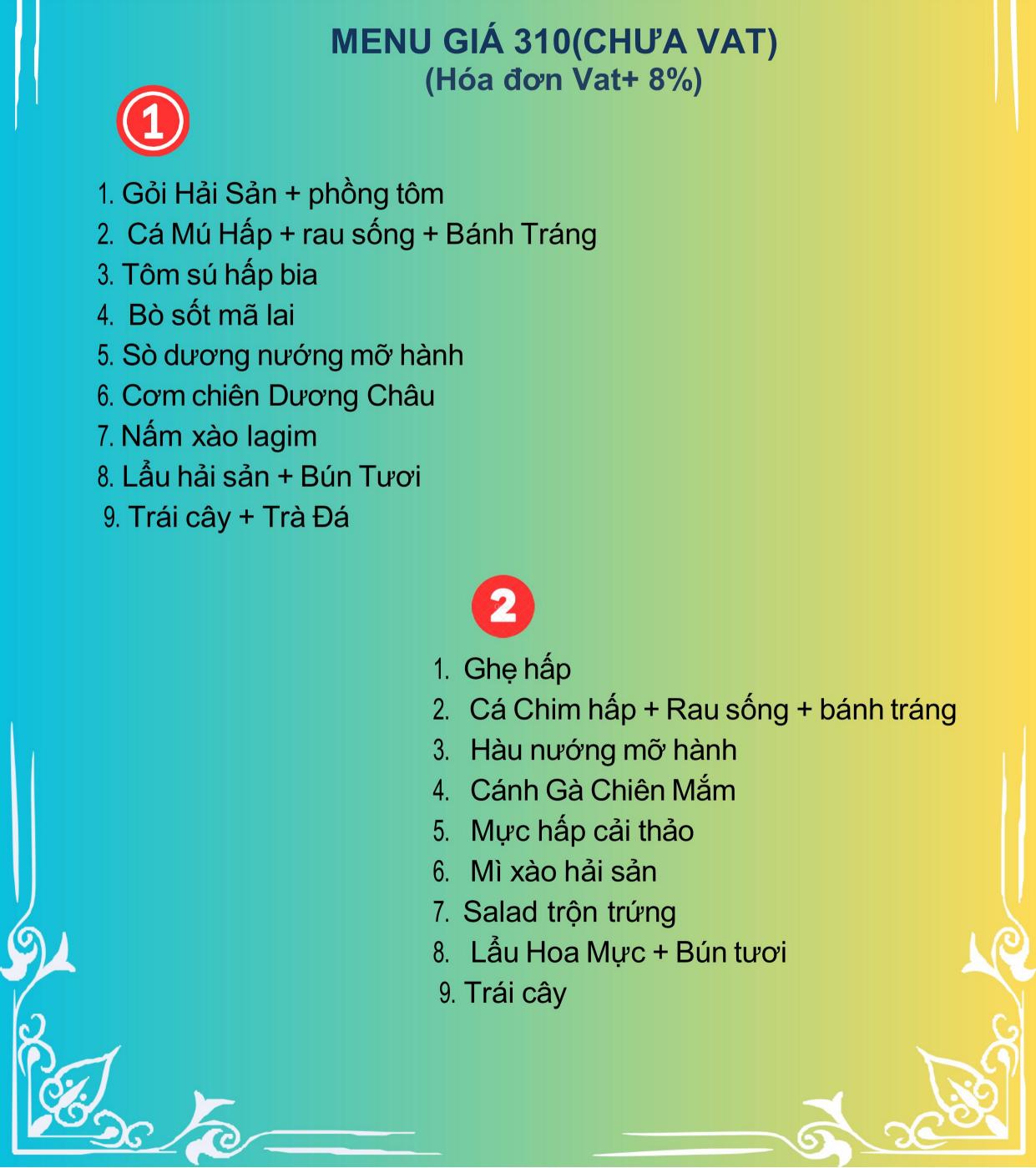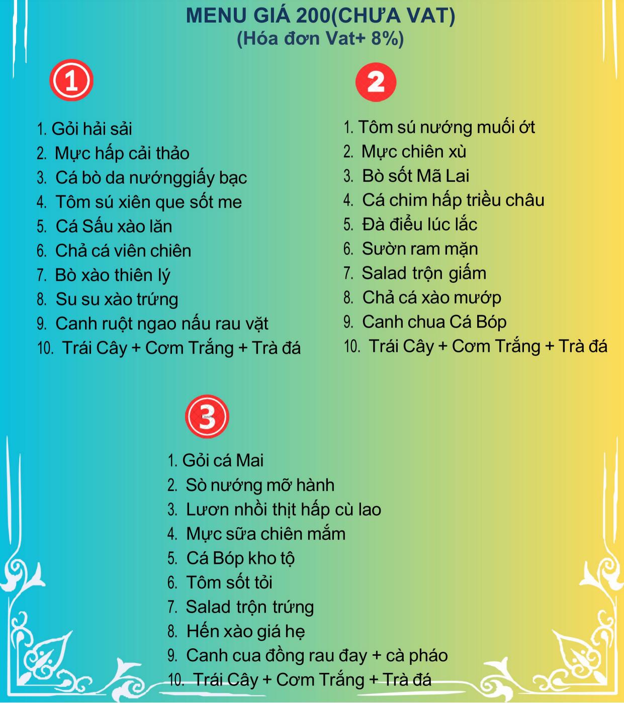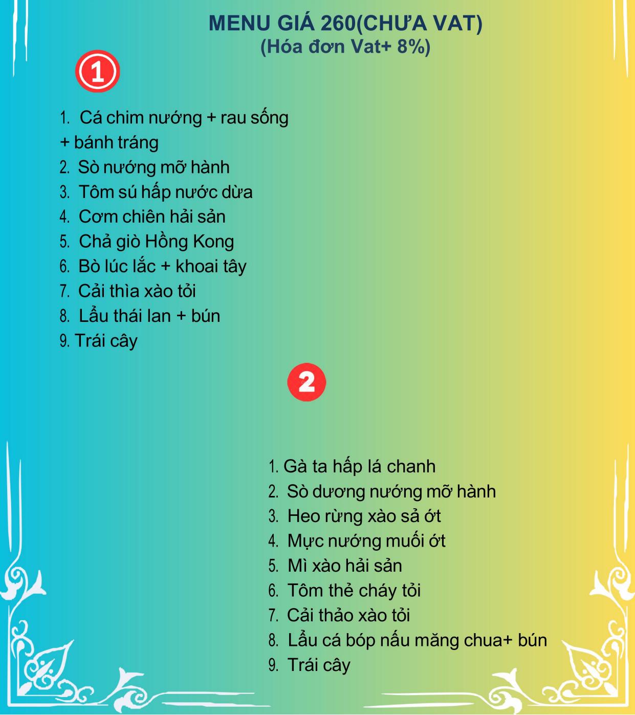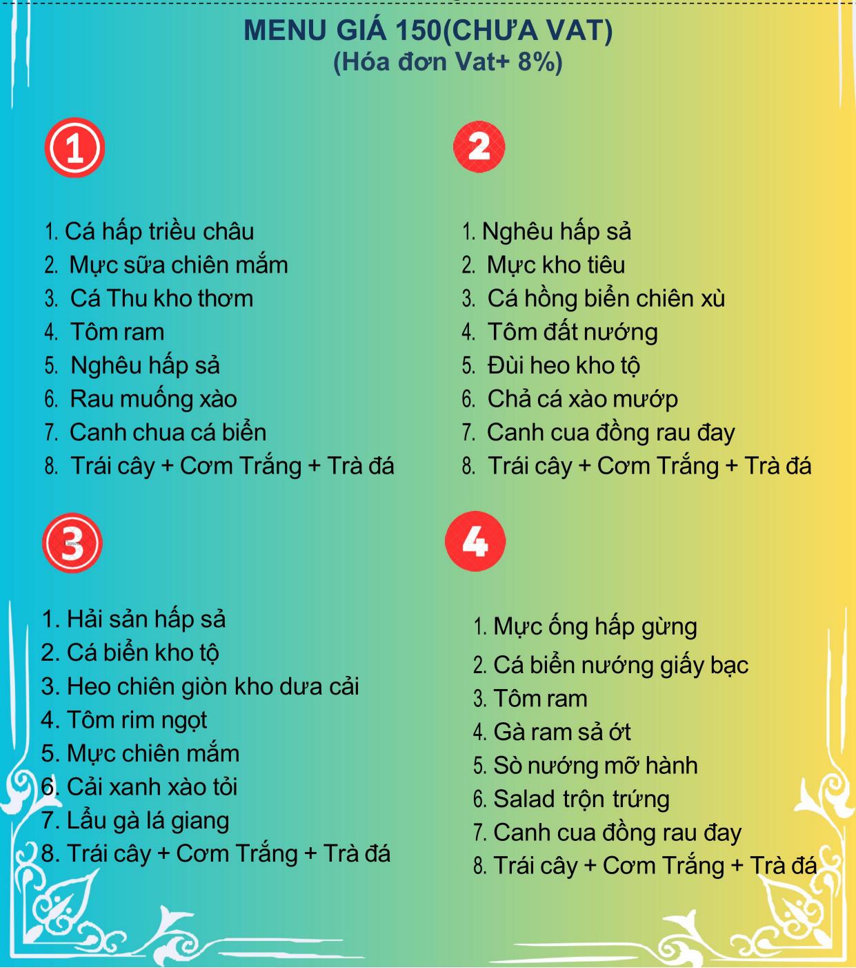 • Món nổi bật: Hải sản tươi sống, món Việt truyền thống, set menu tiệc đa dạng