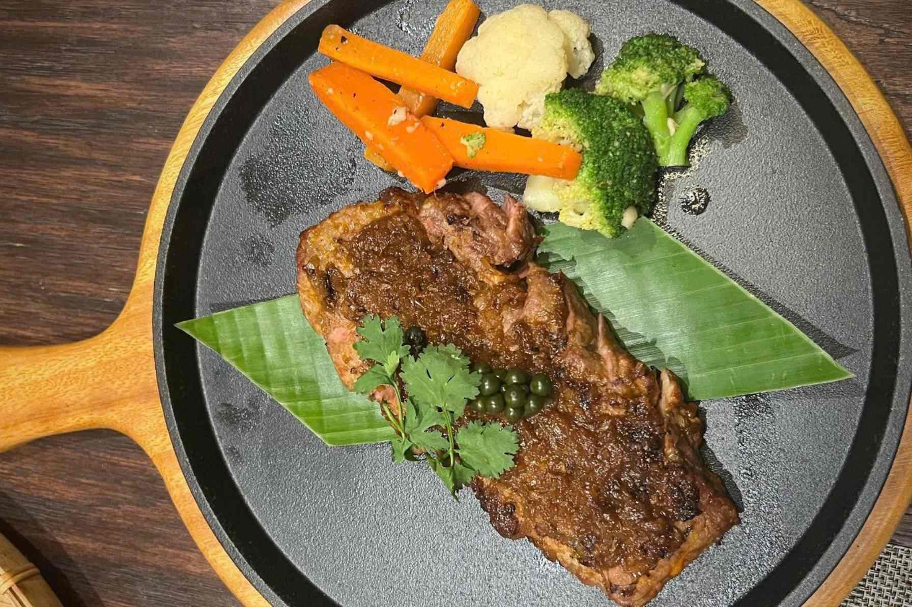 Bò nướng ngũ vị có phần thịt bò mềm, được ướp với năm loại gia vị truyền thống. Hương thơm dịu, vị vừa phải, phù hợp với nhiều khẩu vị. Món ăn giữ đúng tinh thần ẩm thực miền Trung.