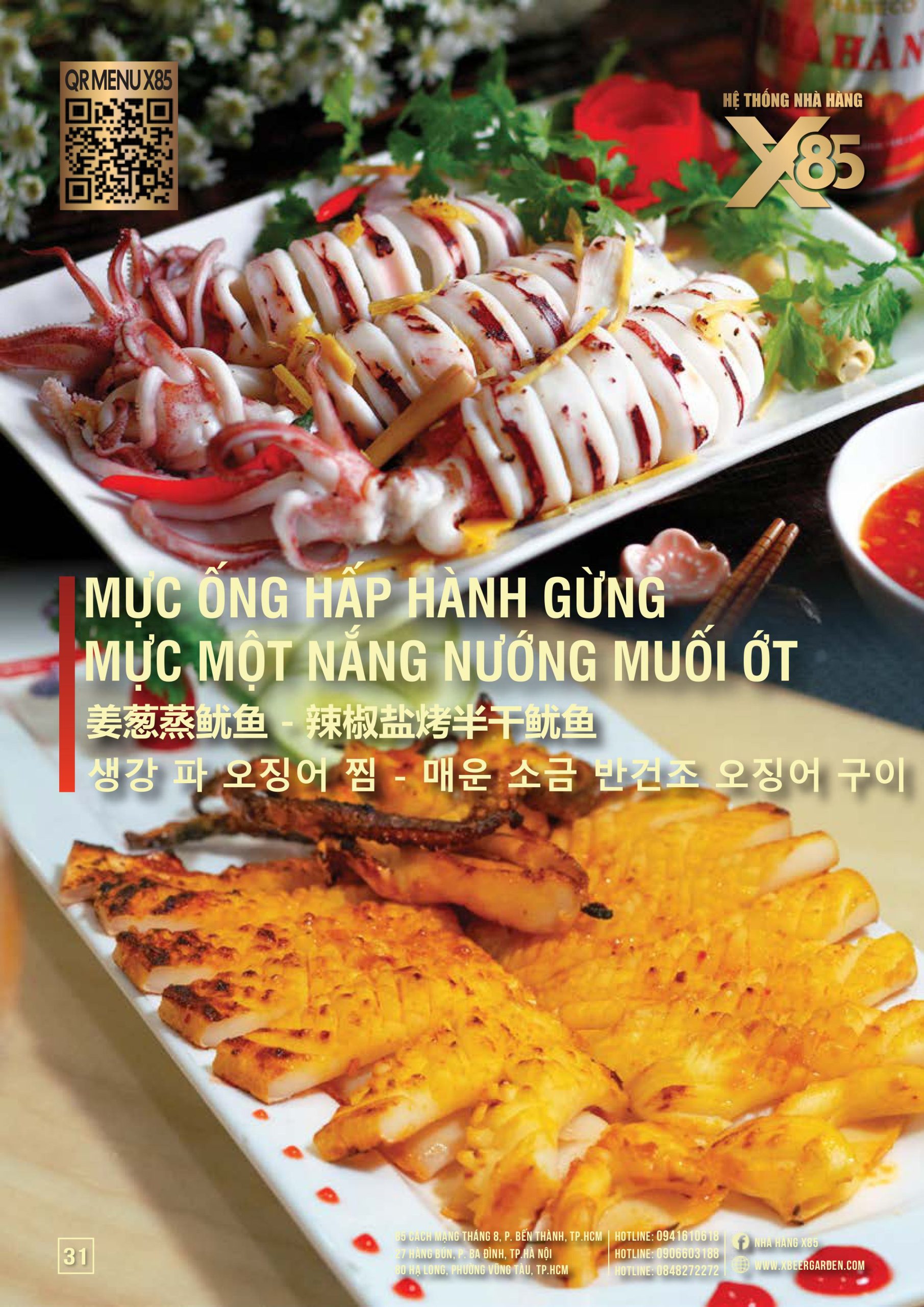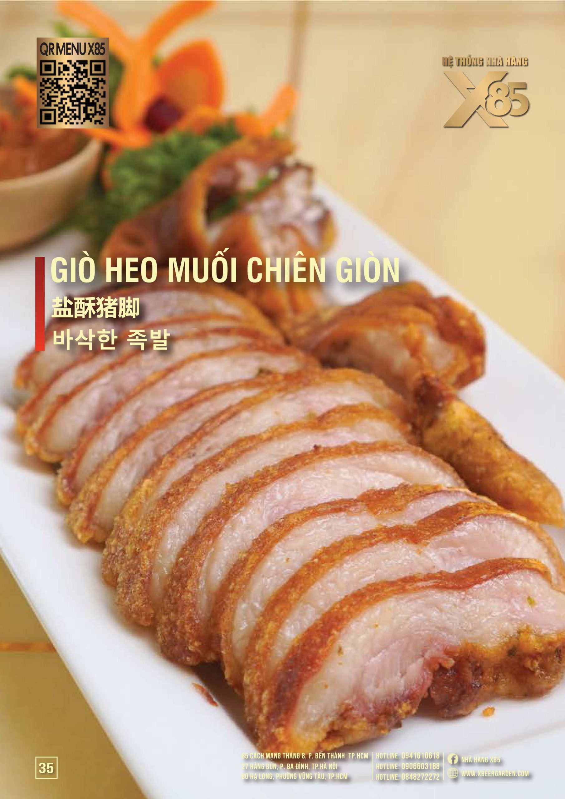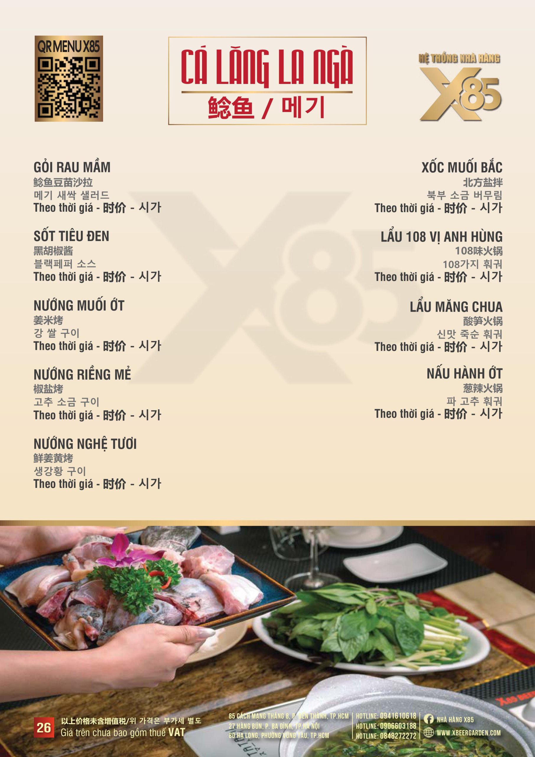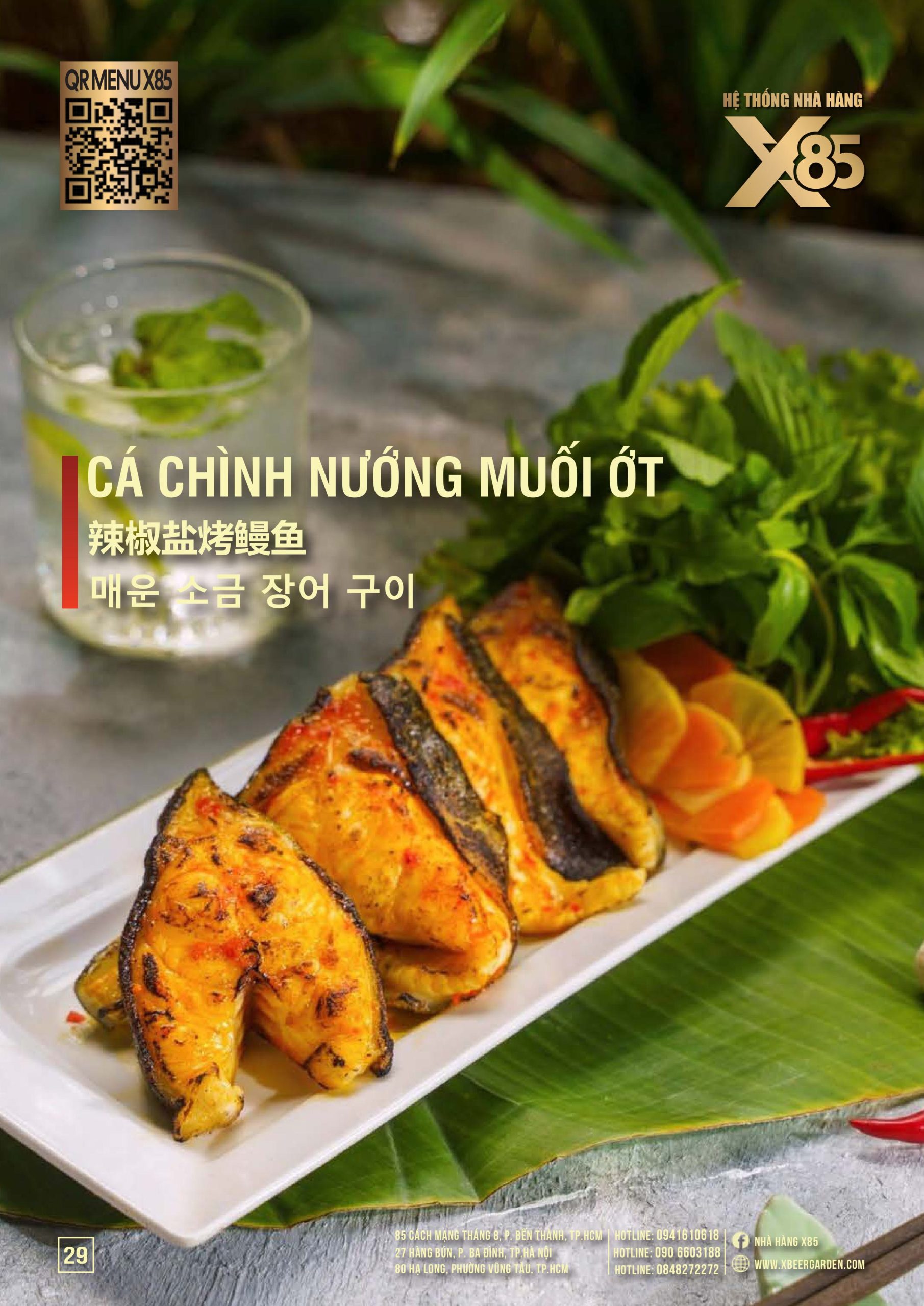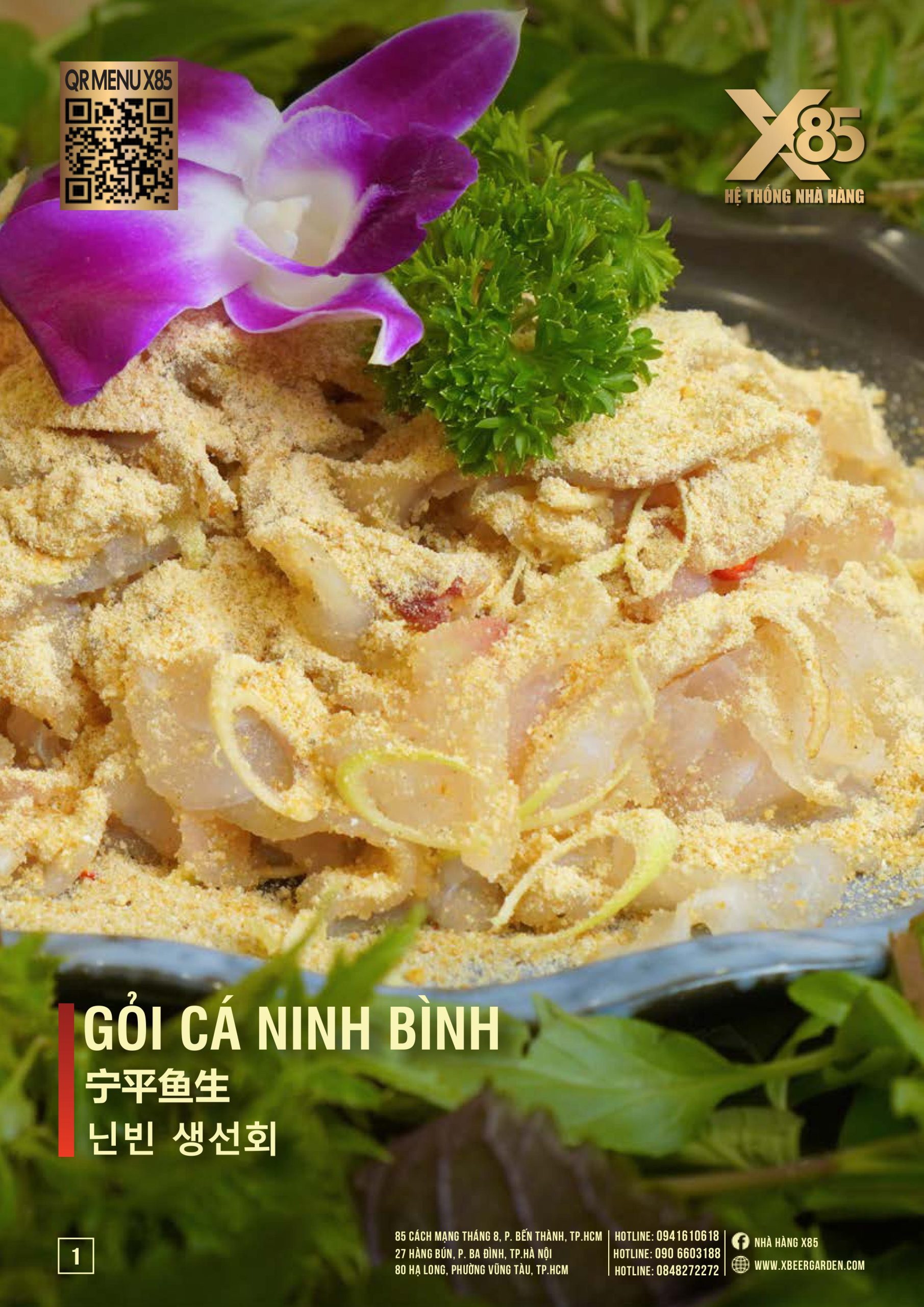 Thực đơn đa dạng và phong phú tại Nhà hàng X85 Hồ Chí Minh giúp khách hàng tận hưởng ẩm thực không giới hạn, từ các món khai vị hấp dẫn đến các món chính đặc sắc với hương vị riêng biệt và cả những món tráng miệng ngọt ngào.