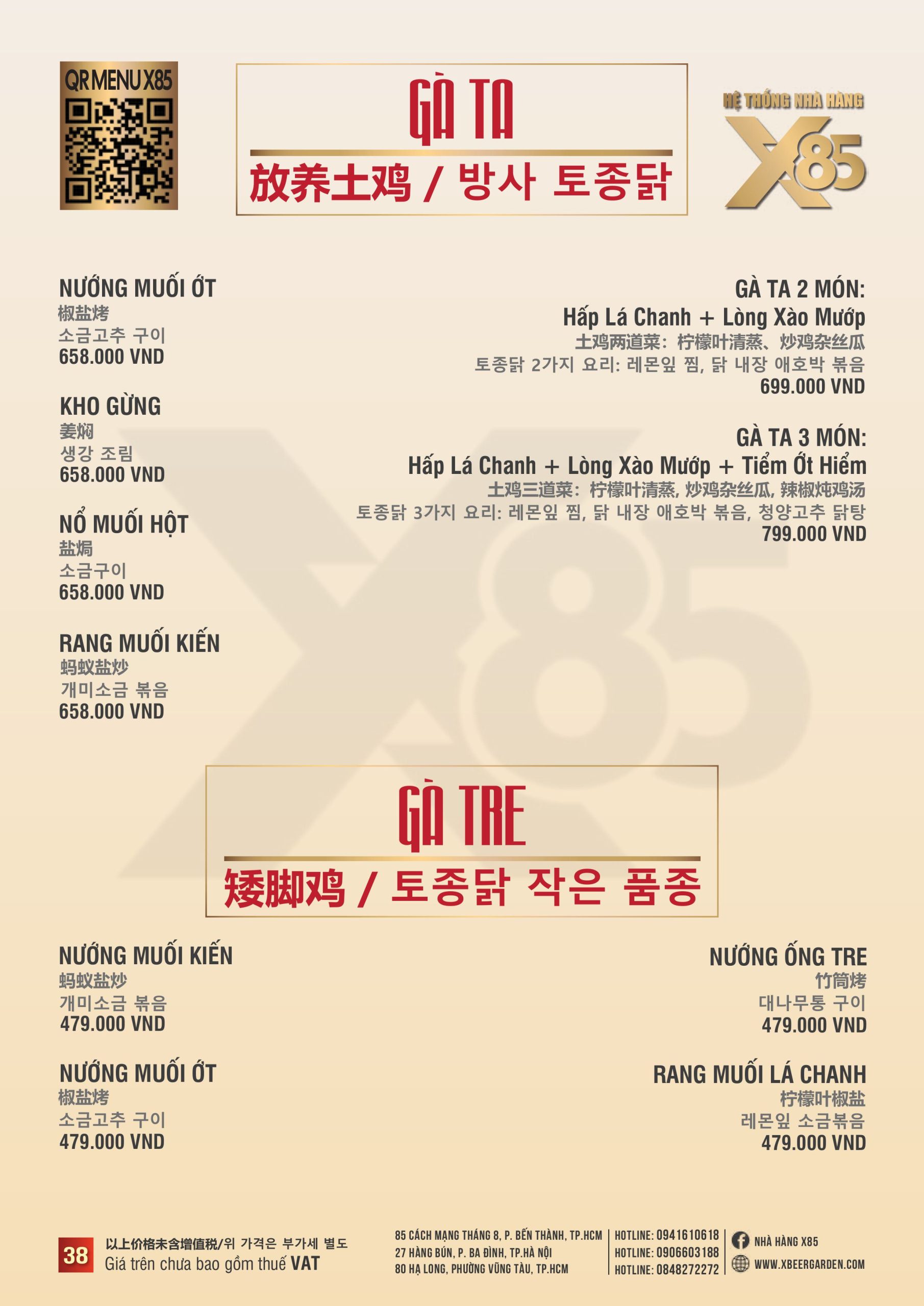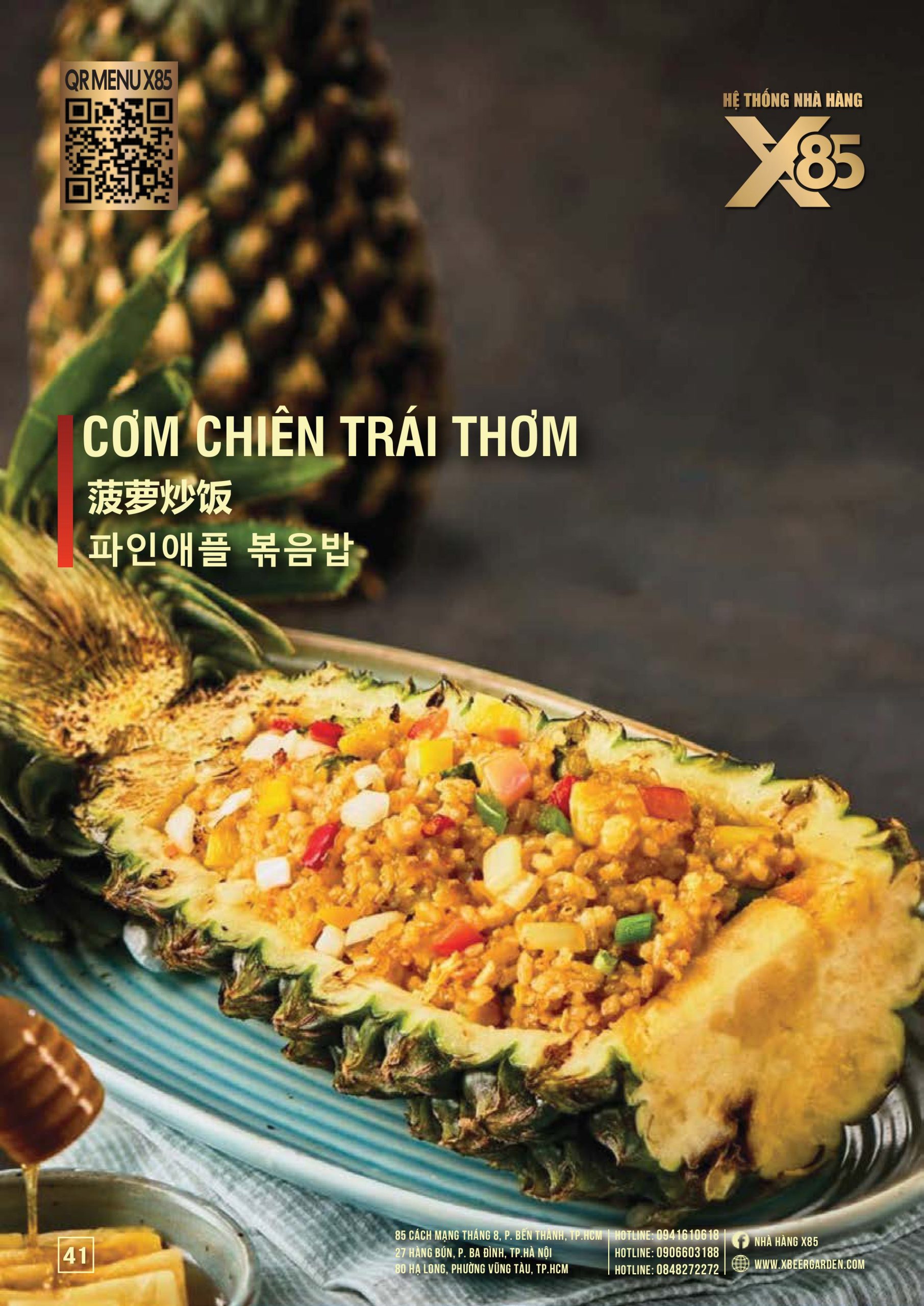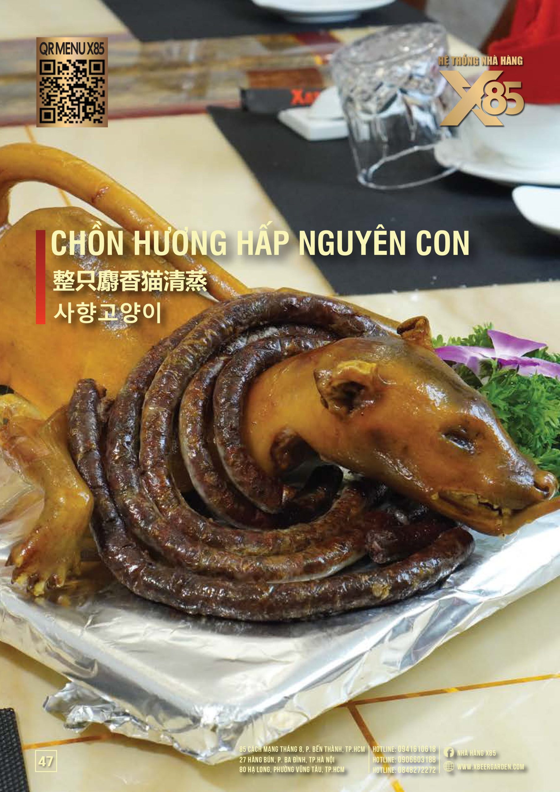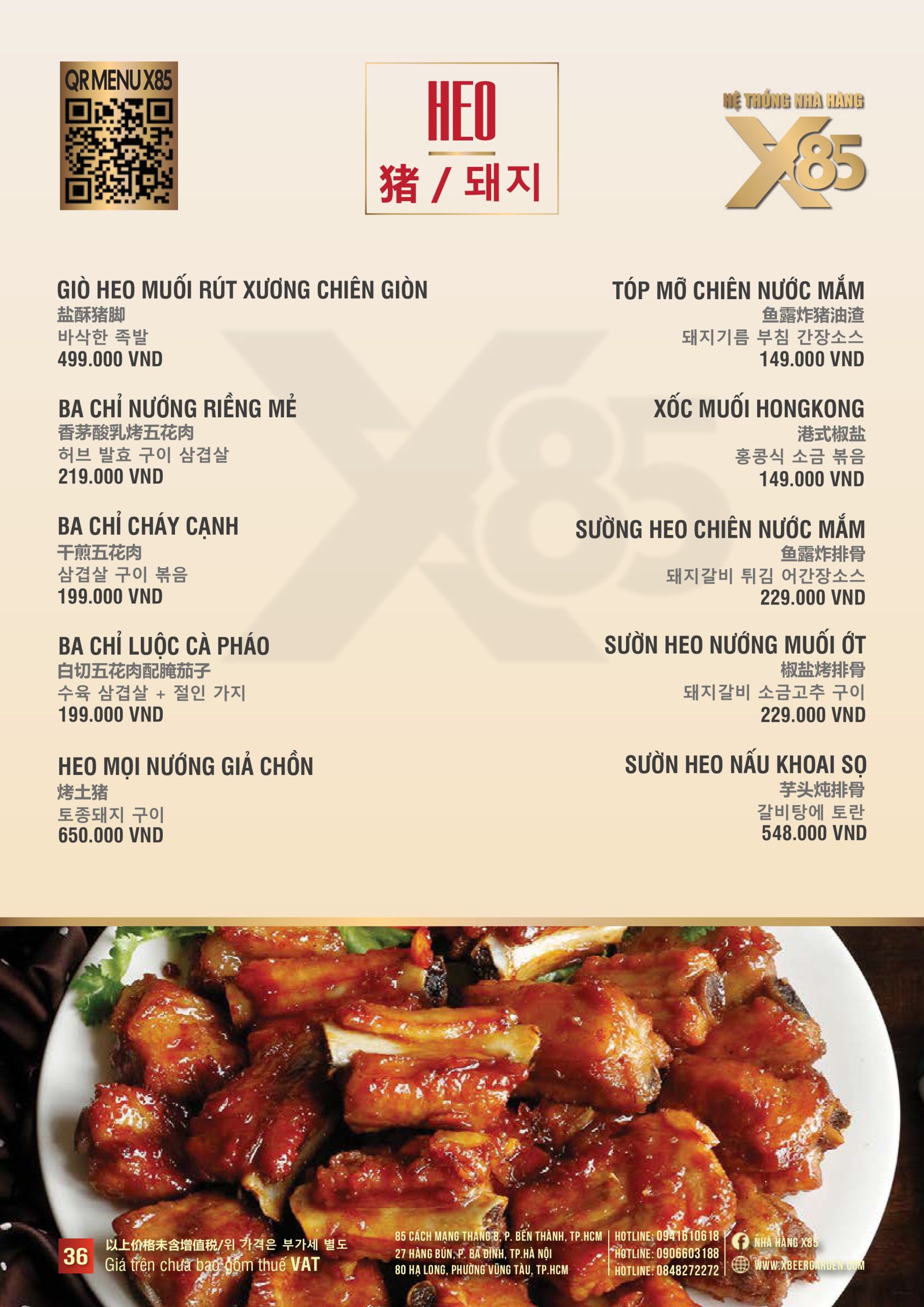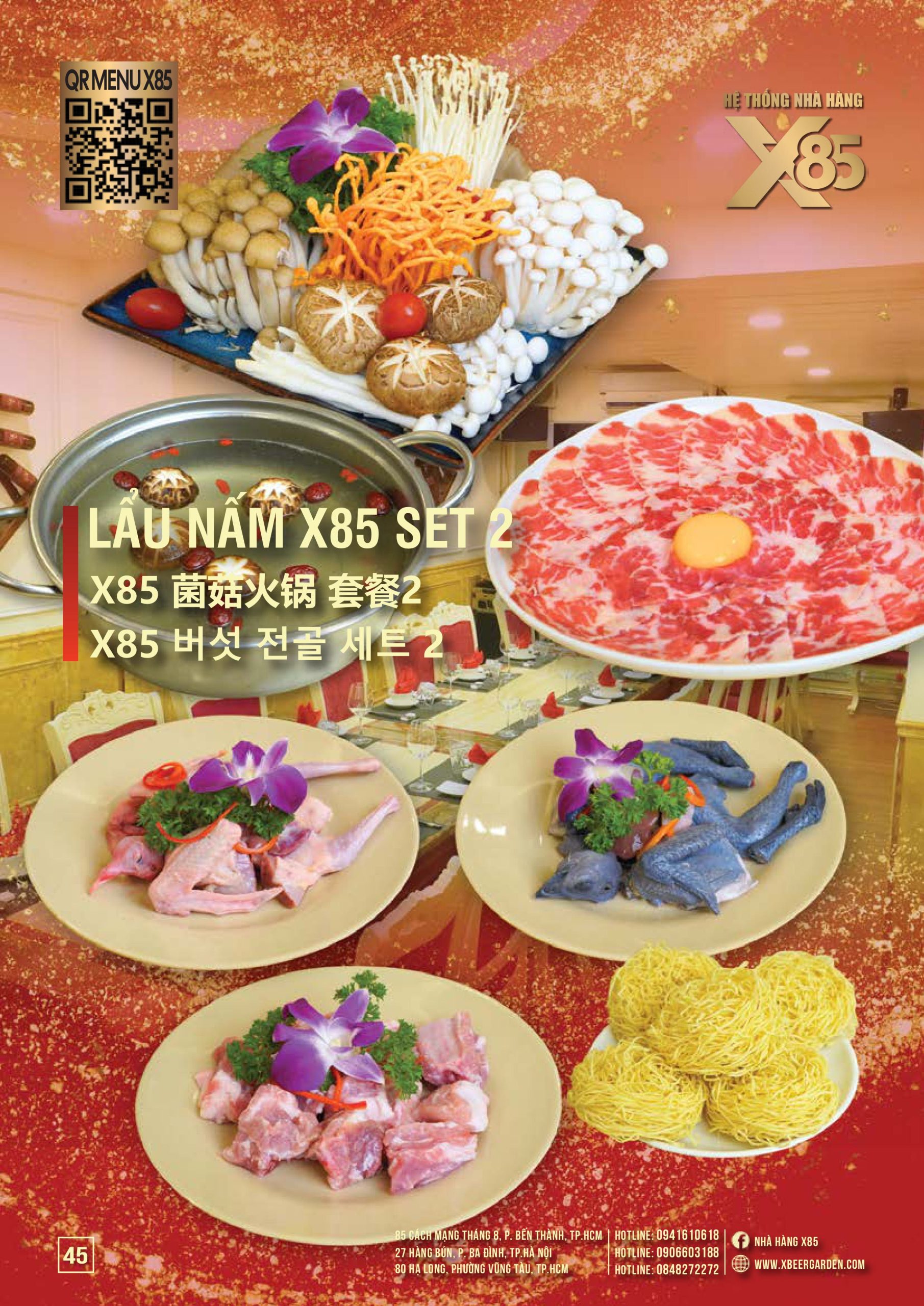 Thực đơn đa dạng và phong phú tại Nhà hàng X85 Hồ Chí Minh giúp khách hàng tận hưởng ẩm thực không giới hạn, từ các món khai vị hấp dẫn đến các món chính đặc sắc với hương vị riêng biệt và cả những món tráng miệng ngọt ngào.
