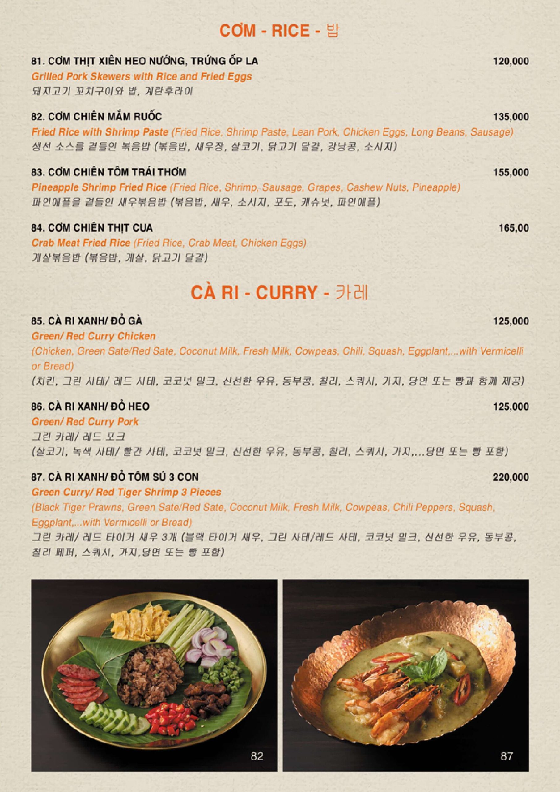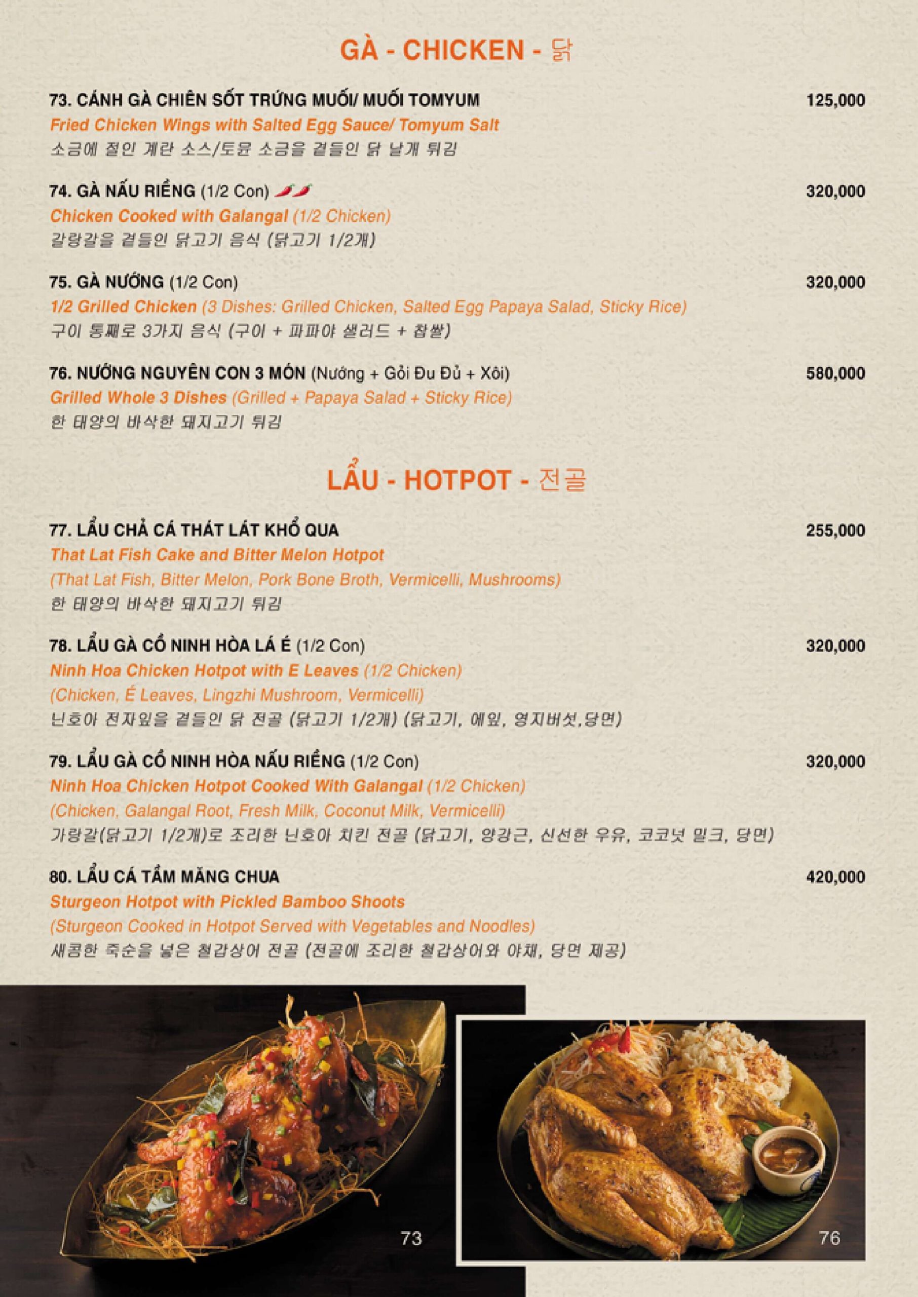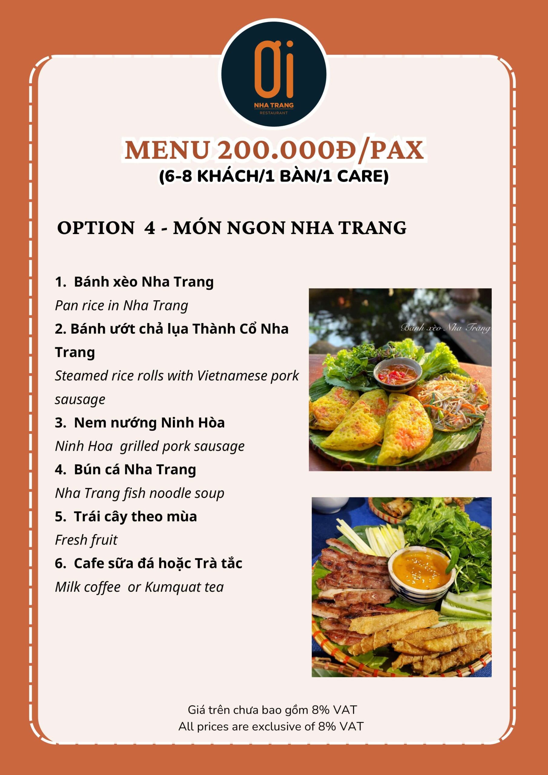 Một trong những điểm khác biệt lớn của Ơi Nha Trang Restaurant là sự thay đổi thực đơn theo từng mùa lễ hội.