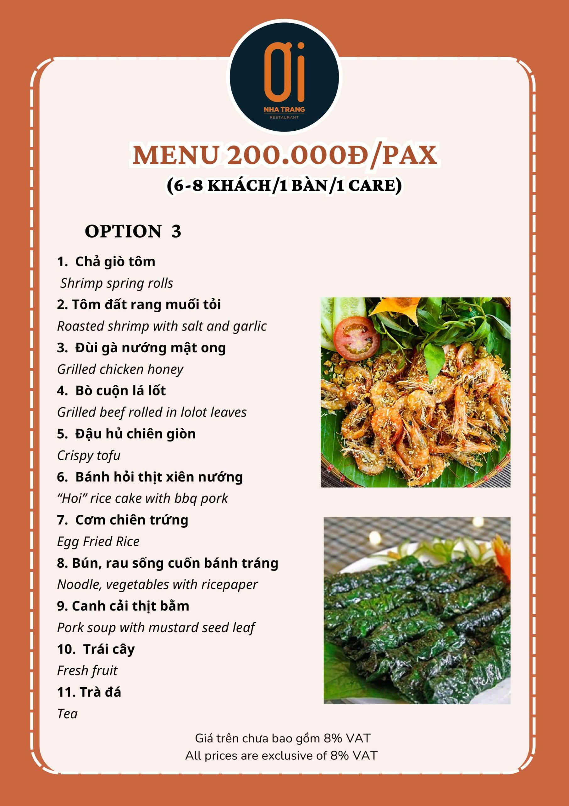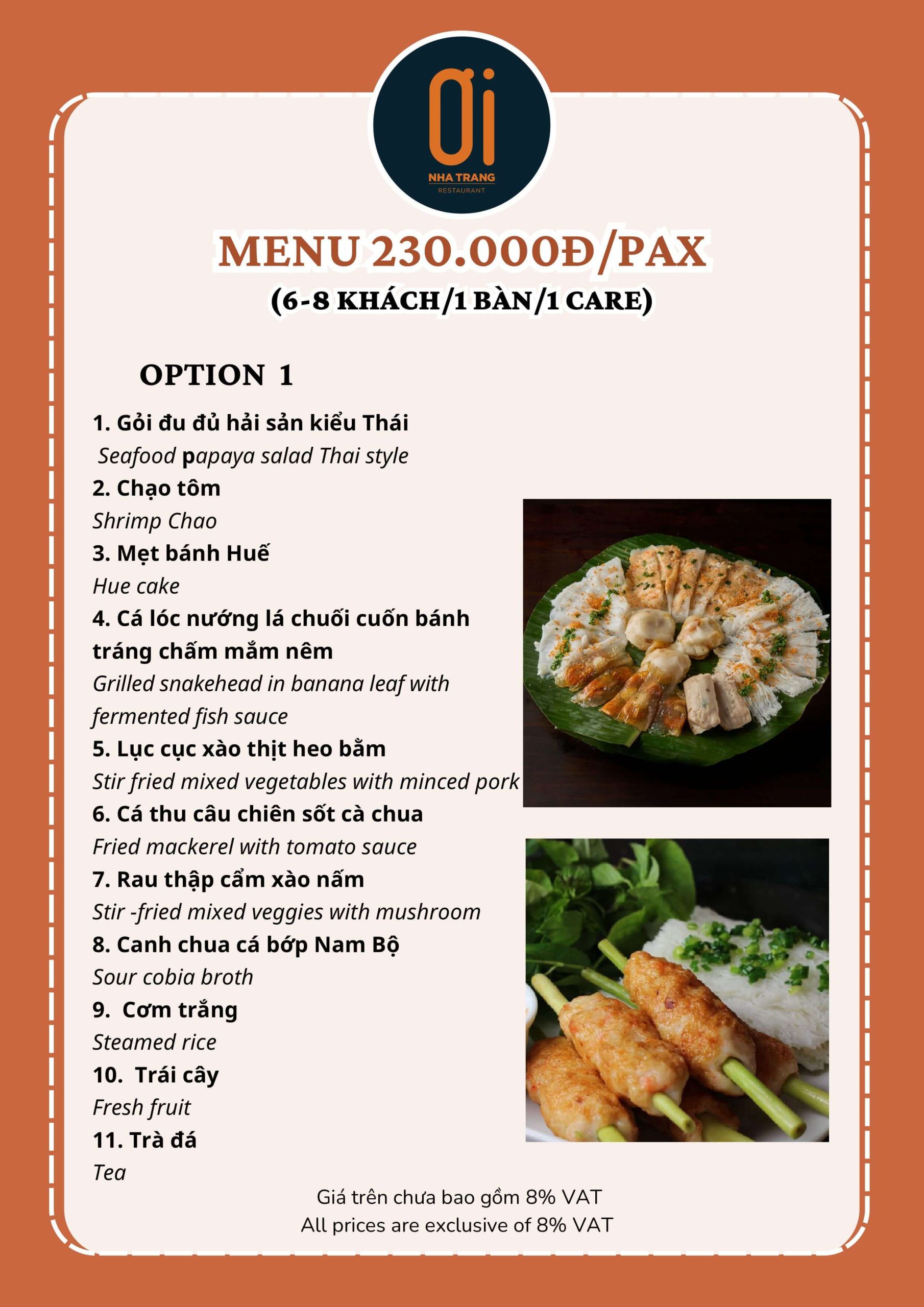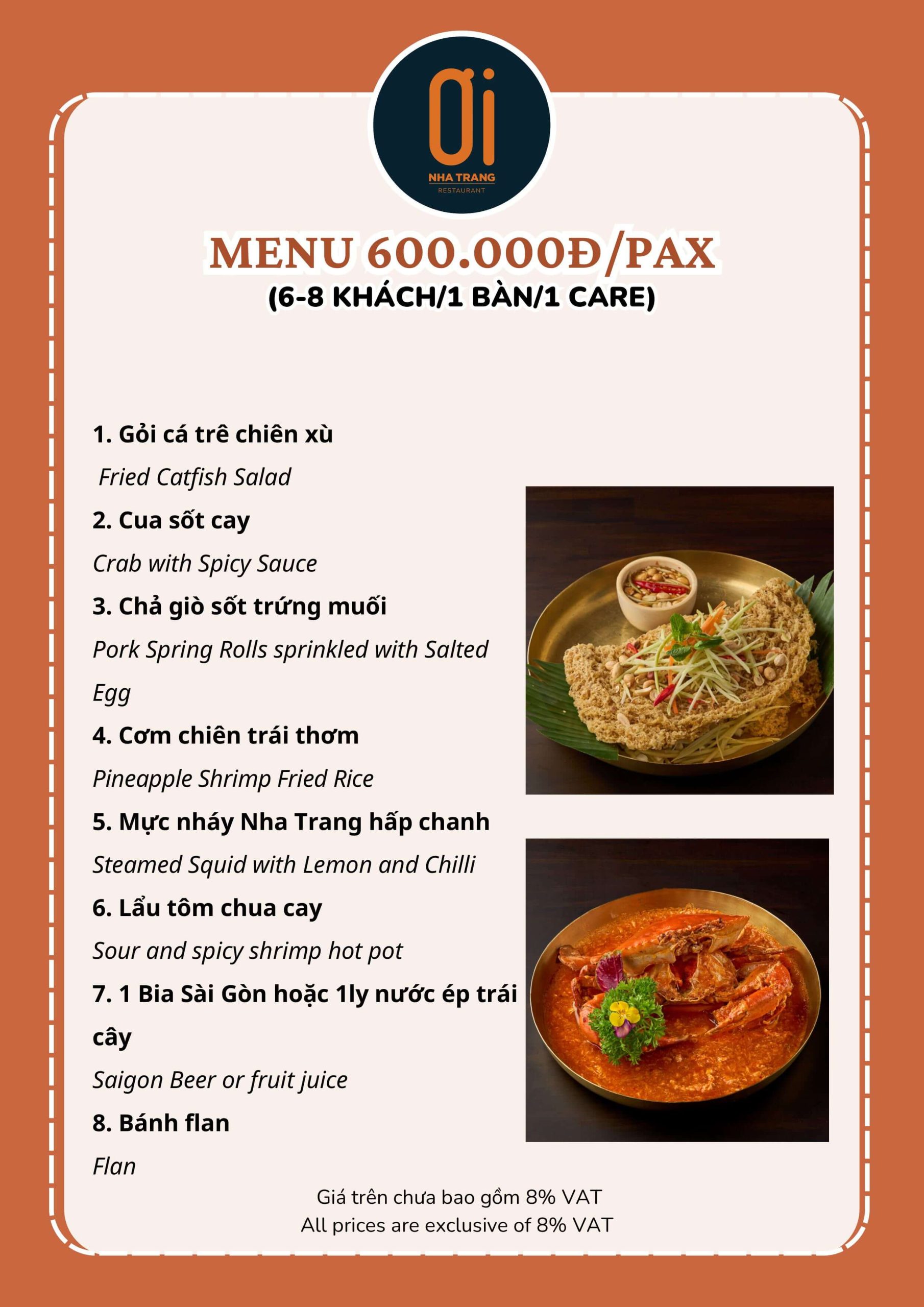 Thực đơn hấp dẫn tại Ơi Nha Trang Restaurant